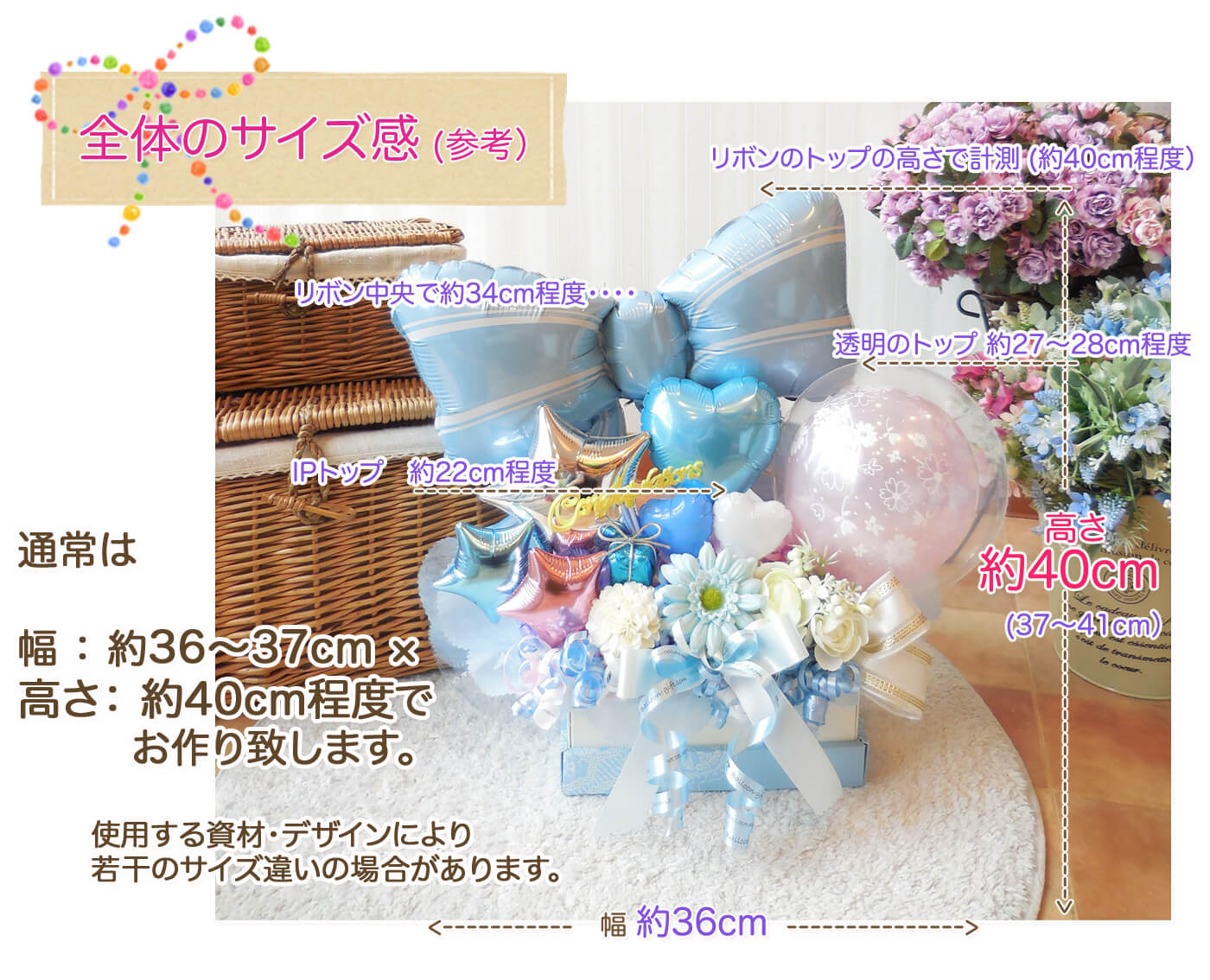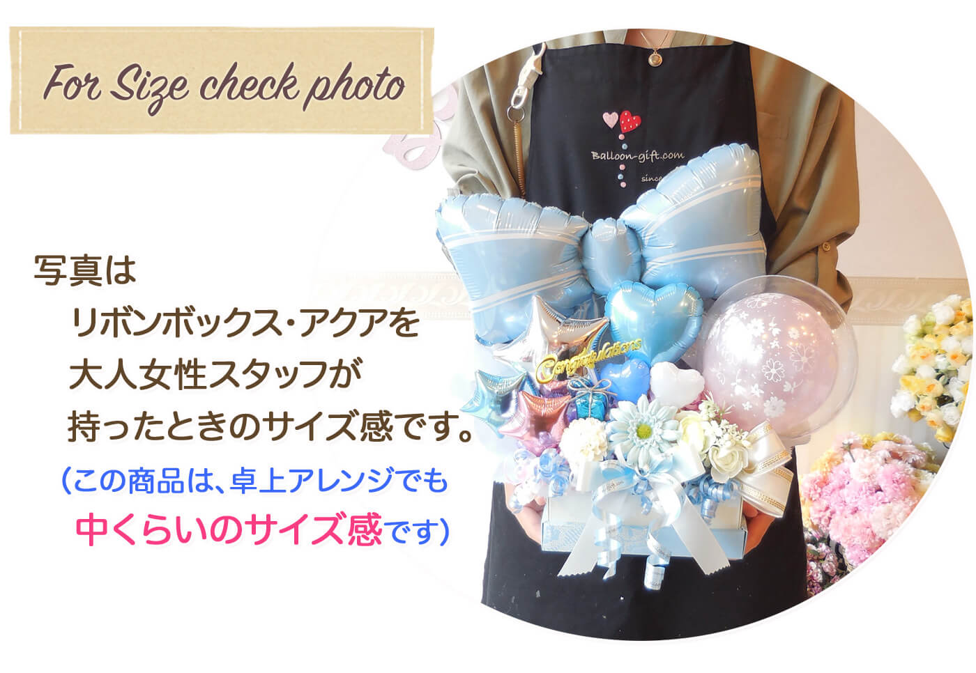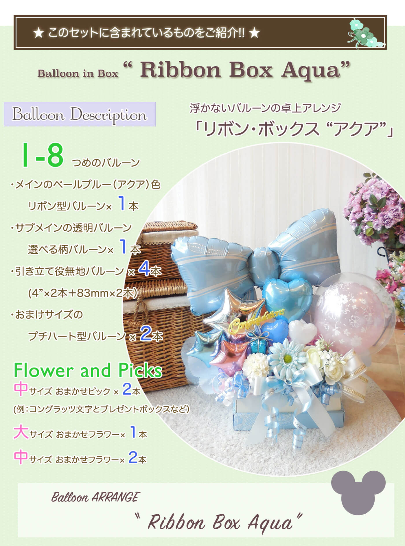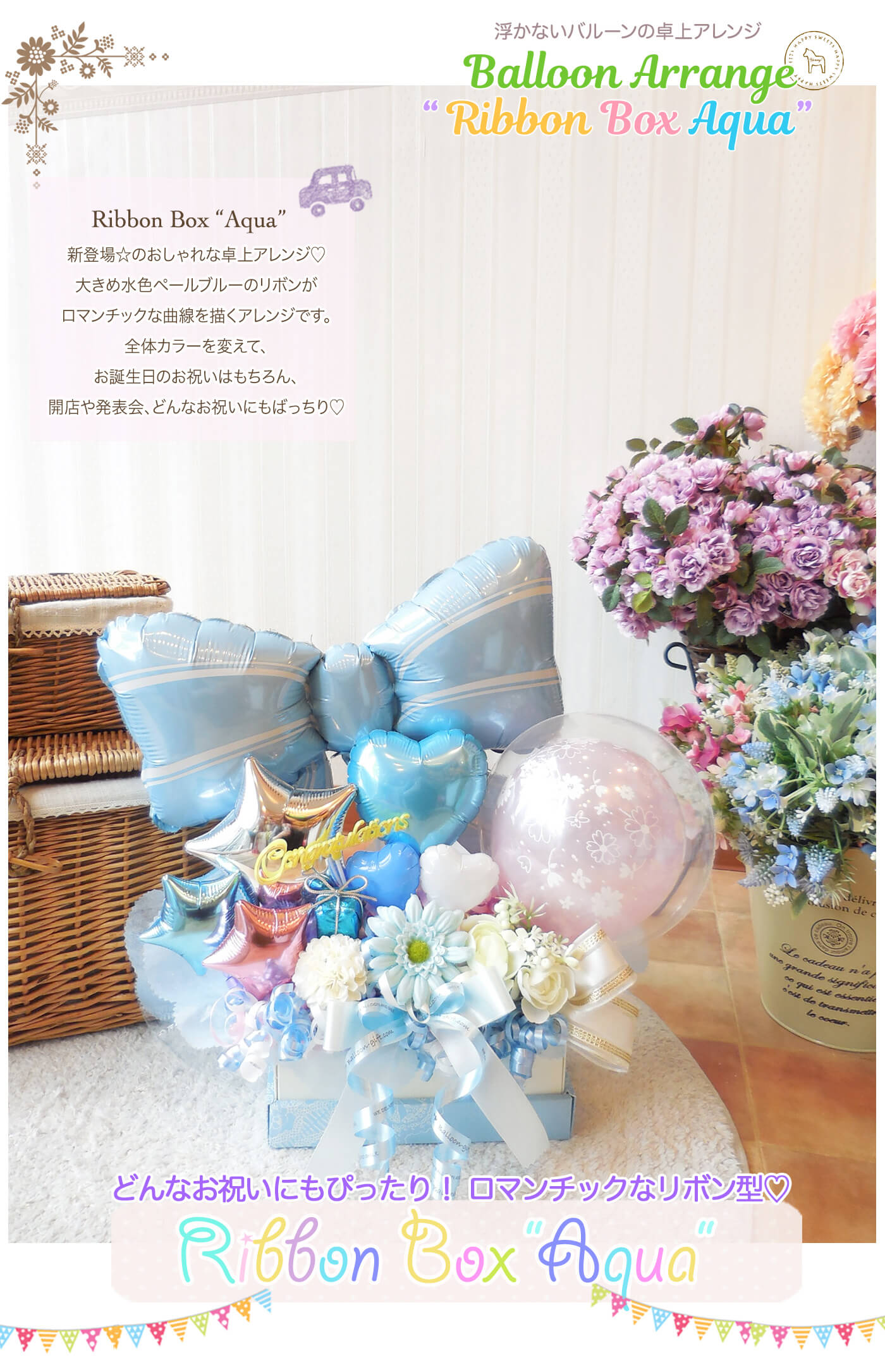 3. 最新卓上アレンジ 「リボン・ボックス《アクア》」《送料無料 7050円》 発表会やお誕生日におすすめのバルーン電報★【BL-B/D3】