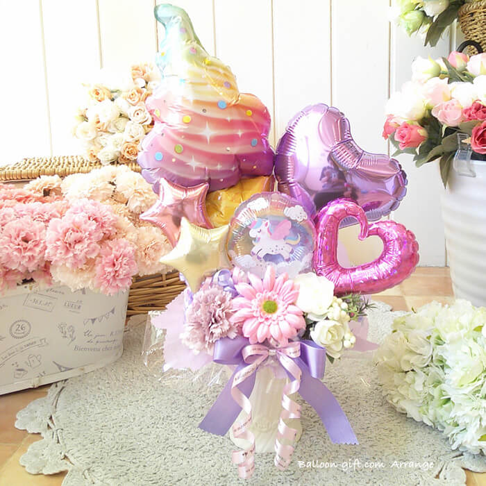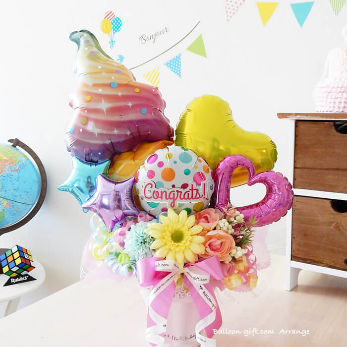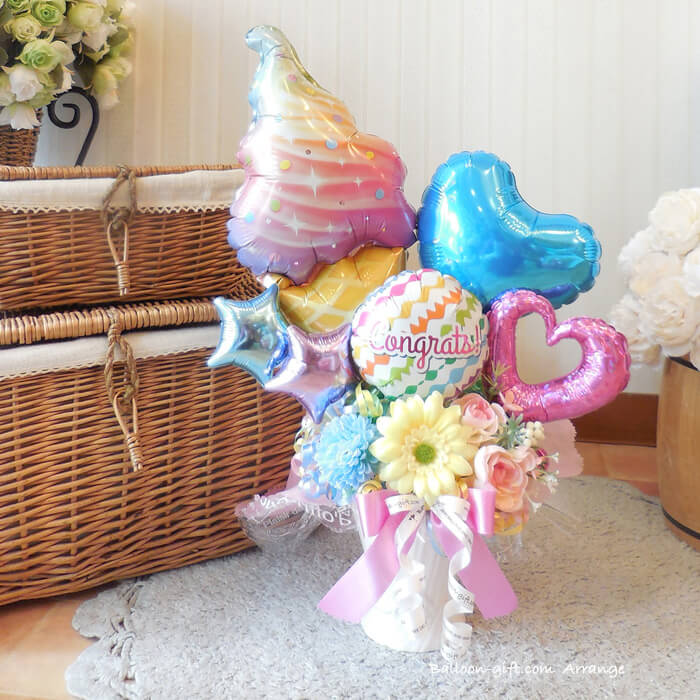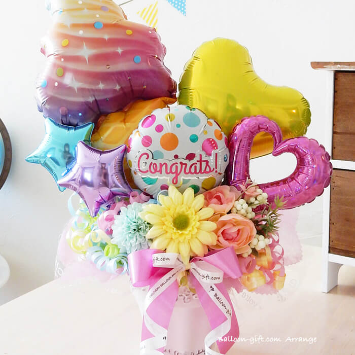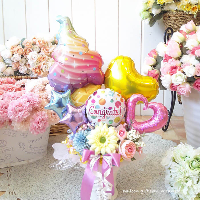 卓上アレンジ「アンプロンプチュ・メモリー」 《送料無料 5050円》 卒業卒園・お誕生日やウエディング・開店周年・発表会にオススメのバルーン電報【BL-A/D1.5】