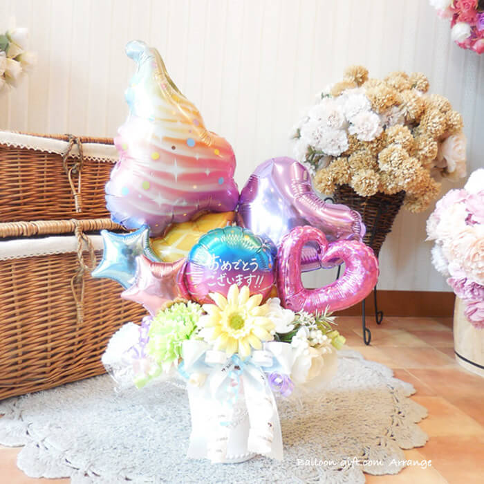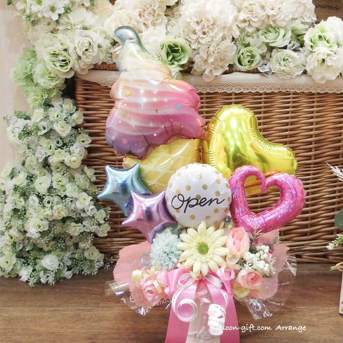 3. アイス屋さん開店祝い専用! 「レインボー・ソフトクリーム・ポット」《送料無料 5910円》 開店や周年のお祝いにおすすめのバルーン電報★【BL-B/D2】