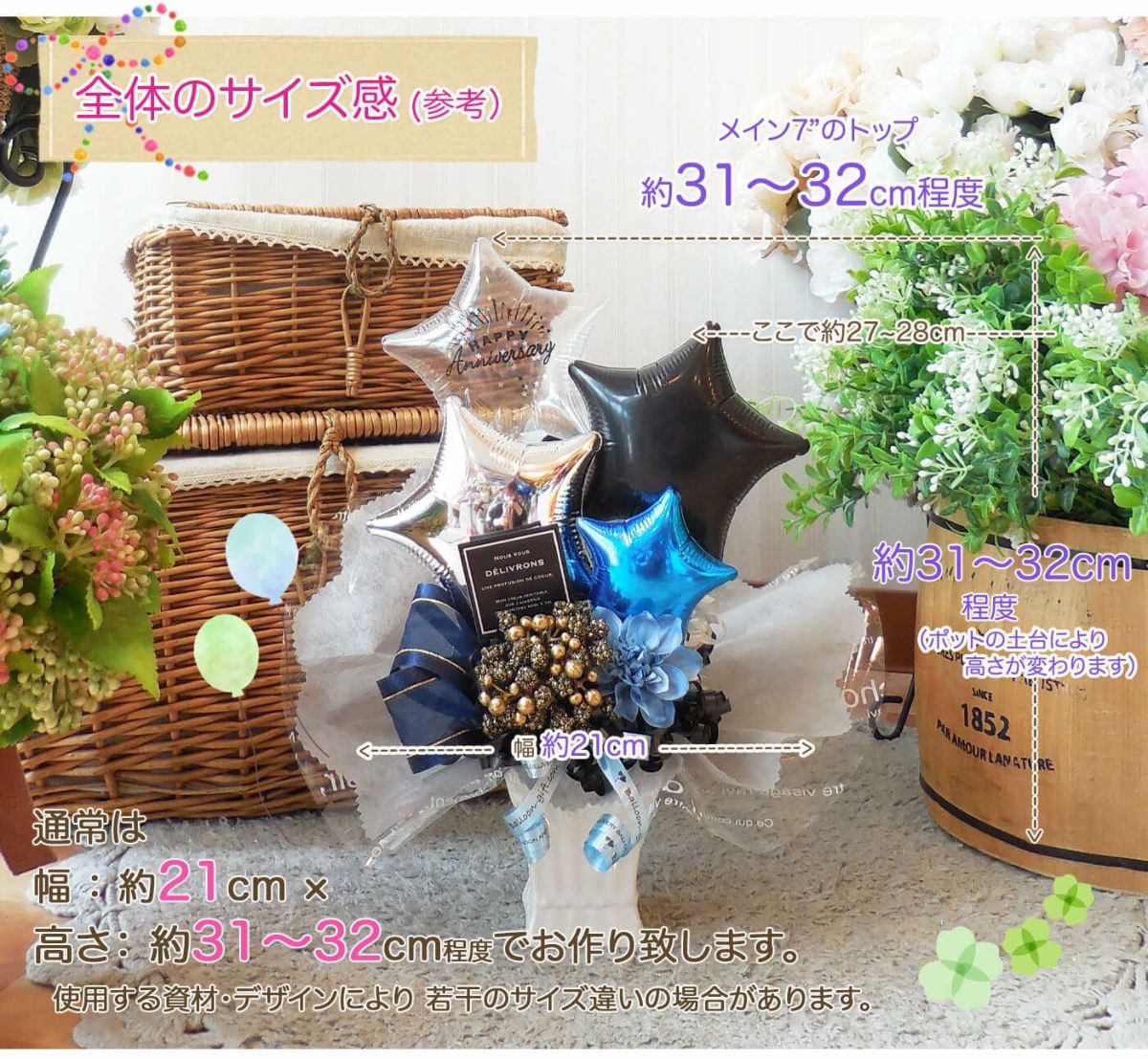 3. 卓上ポット「スターダスト・ポット」《送料無料 5150円》 開店のお祝いにおすすめのバルーン電報【BL-AB/D1.5】