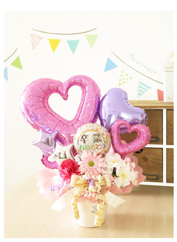 卓上アレンジ「アンプロンプチュ・メモリー」 《送料無料 5050円》 卒業卒園・お誕生日やウエディング・開店周年・発表会にオススメのバルーン電報【BL-A/D1.5】