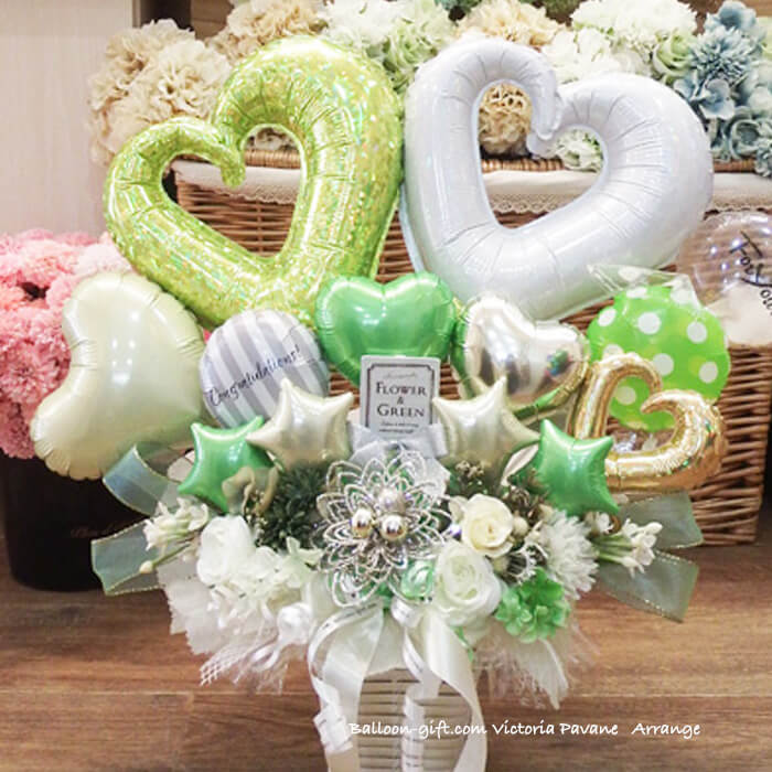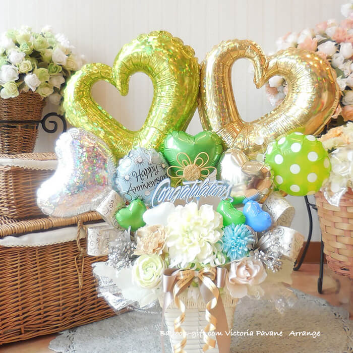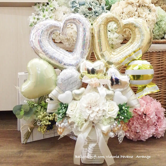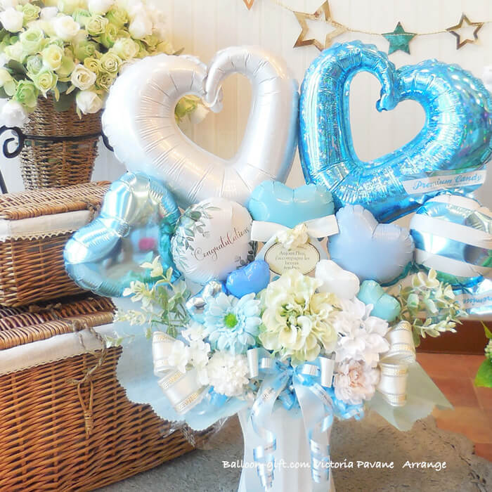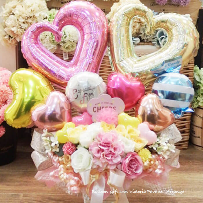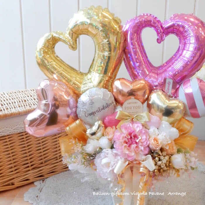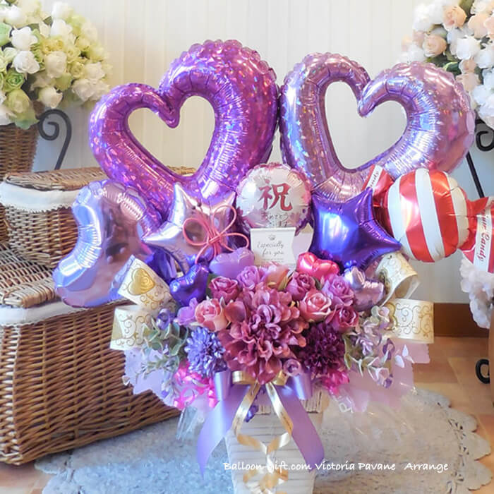 3. 卓上アレンジ「ツインハート・ヴィクトリア・パヴァーヌ」《送料無料 10500円》お誕生日や開店周年・コンサート・ライブにオススメのバルーン電報【BL-C/D4】