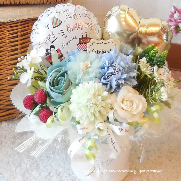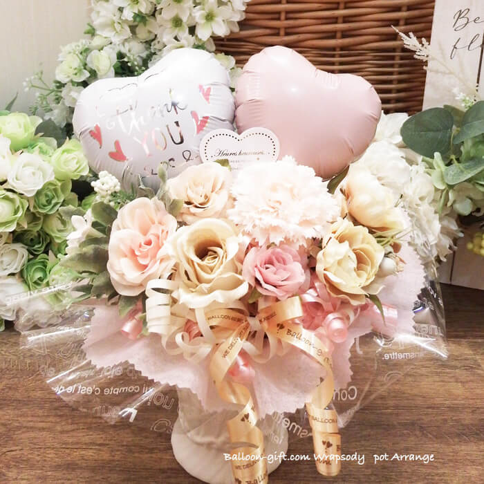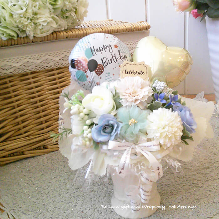 卓上アレンジ「アンプロンプチュ・メモリー」 《送料無料 5050円》 卒業卒園・お誕生日やウエディング・開店周年・発表会にオススメのバルーン電報【BL-A/D1.5】