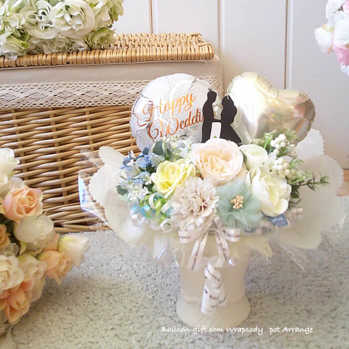 片手にちょこんと乗るサイズがキュートな卓上アレンジ 「新・ミニポット」」《送料無料 3530円》お誕生日やウエディング・開店周年・発表会に大人気のバルーン電報【BL-A/D1】