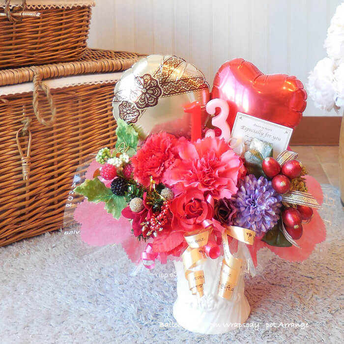 数字がメインの卓上アレンジ 「アニバーサリー・ナンバー・ポット」 《送料無料 6270円》 数字のバルーンがメインのミディアムサイズ卓上アレンジ お誕生日やお店の周年祝いにオススメのバルーン電報【BL-B/D2】