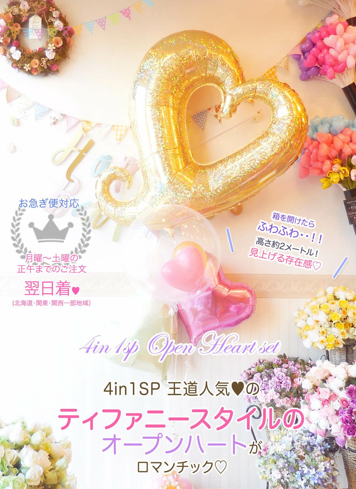 3. 推しカラーに七変化でどんなお祝いにも。 4in1SP『オープンハート・パーフェクトセット』【BL-G】 お誕生日やウエディング・開店周年にオススメのバルーン電報 店舗受け取り・発送どちらもOK! 《大箱 送料込 9450円 / 店舗受取:7200円 税別》