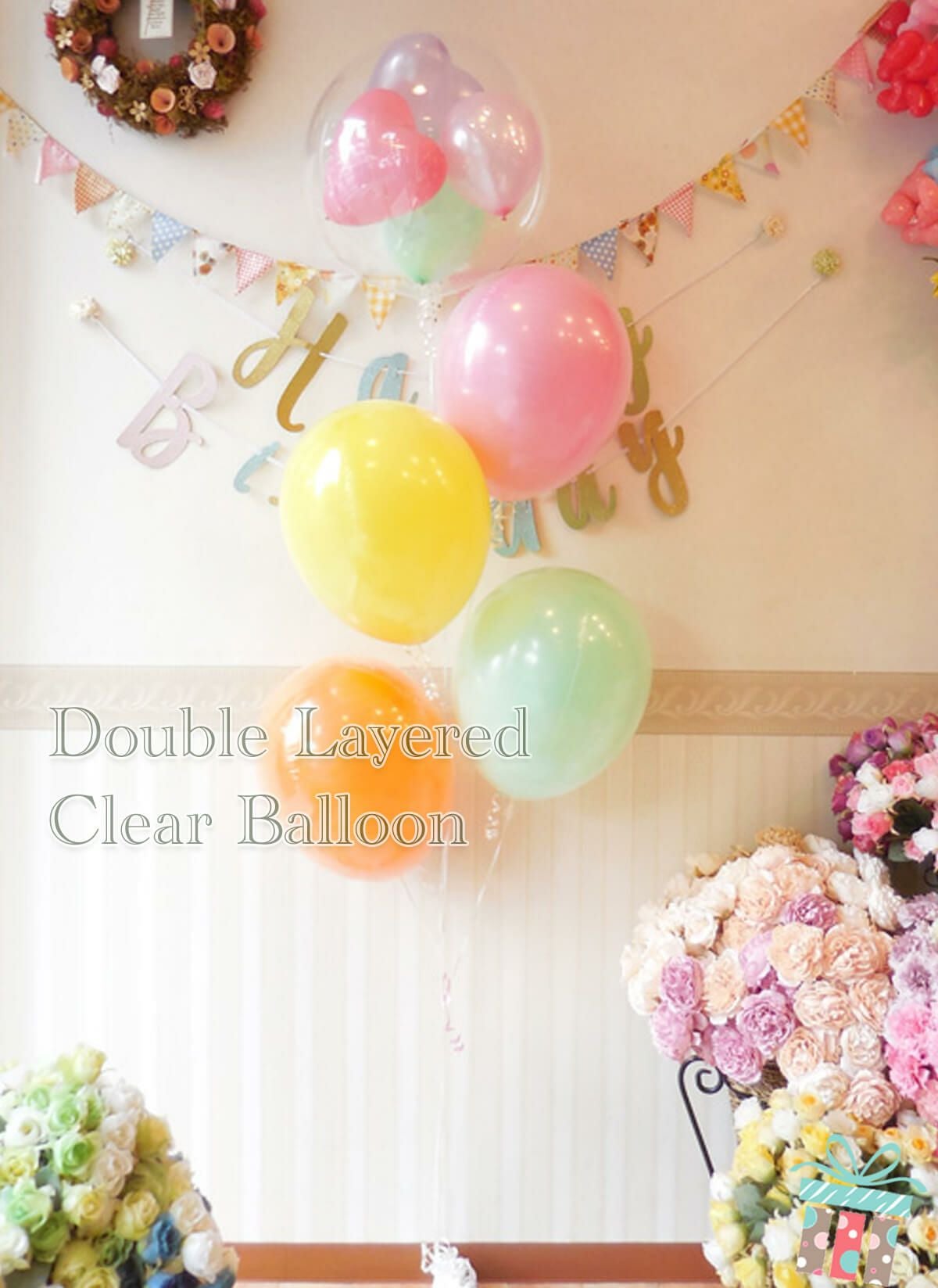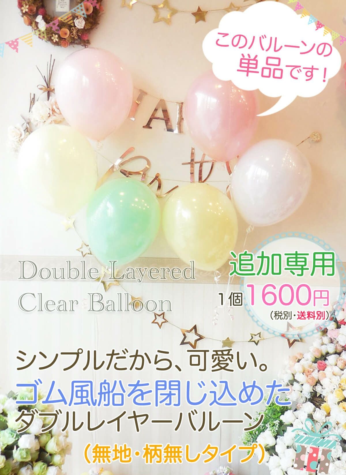 ☆送料は自動で計算されます☆ (1600円+税より〜) 【追加/単品】ゴム風船を閉じ込めた シンプルなダブルレイヤーバルーン(無地タイプ)全6色:1個1600円(送料別・税別)