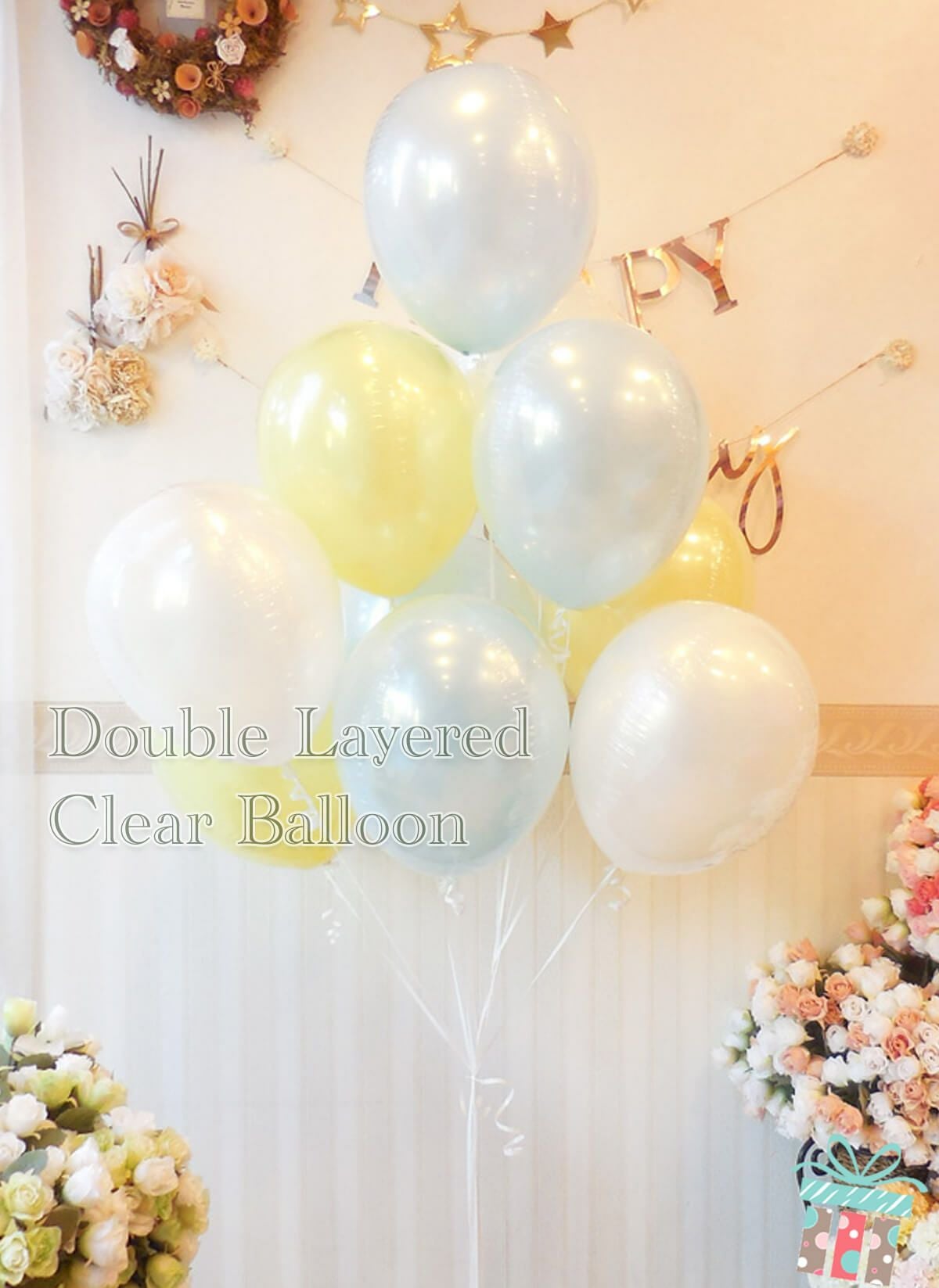 お誕生日やウエディング・開店周年に大人気のバルーン電報!透明感に惚れるボリューミー6個セット【BL-F】