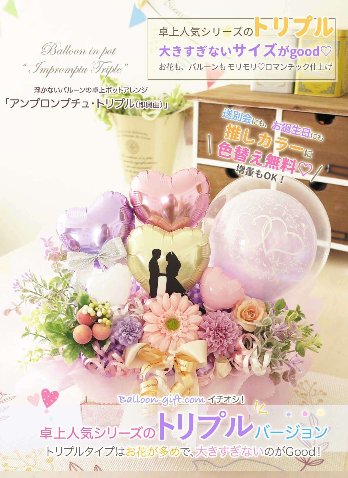 3. 人気シリーズ♡卓上アレンジ「アンプロンプチュ・トリプルBOX」《送料無料 8490円》 お誕生日やウエディング・開店周年に大人気のバルーン電報【BL-A/D3】