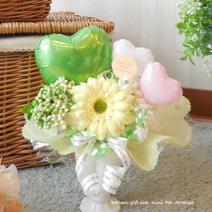 片手にちょこんと乗るサイズがキュートな卓上アレンジ 「新・ミニポット」」《送料無料 3530円》お誕生日やウエディング・開店周年・発表会に大人気のバルーン電報【BL-A/D1】