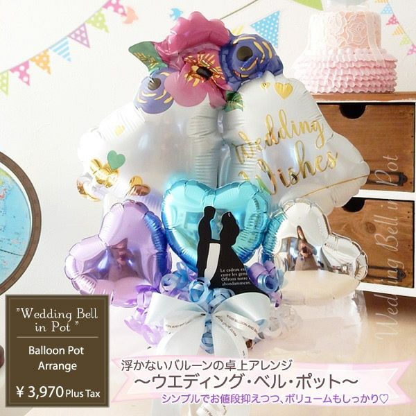 「ウエディング・ベル・ポット」《送料無料 4,350円》 ウエディング・ご結婚のお祝いにおすすめのバルーン電報★【BL-B/D1.5】