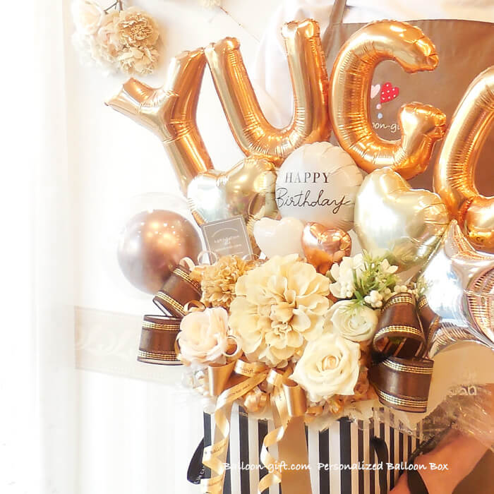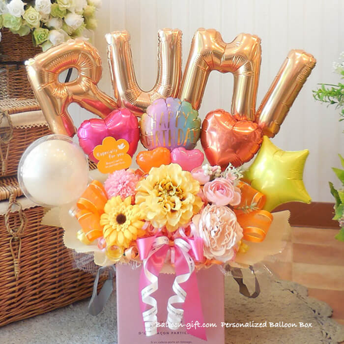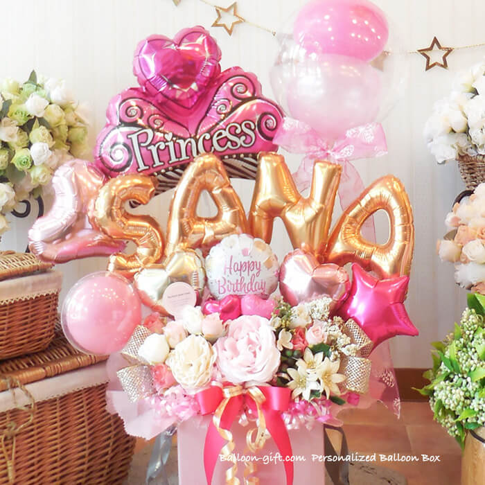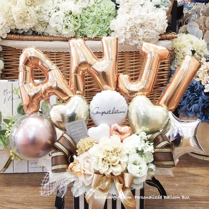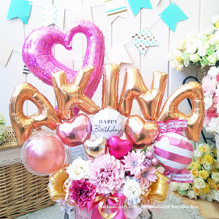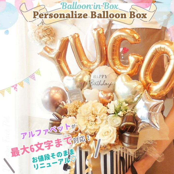 ★要予約!人気商品ですが製作に日数がかかります★ ☆要日数☆人気!6文字までの名前をアルファベットで☆「パーソナライズ・バルーン・ボックス」《送料無料 10100円より》 お誕生日や開店周年にオススメのバルーン電報【BL-C/5文字以上はE2・D4】