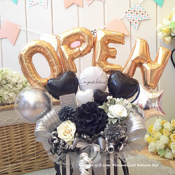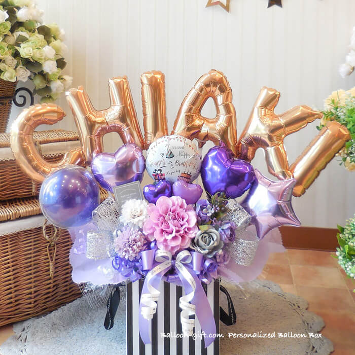 3. ☆要日数☆人気!6文字までの名前をアルファベットで☆「パーソナライズ・バルーン・ボックス」《送料無料 10100円より》 お誕生日や開店周年にオススメのバルーン電報【BL-C/5文字以上はE2・D4】