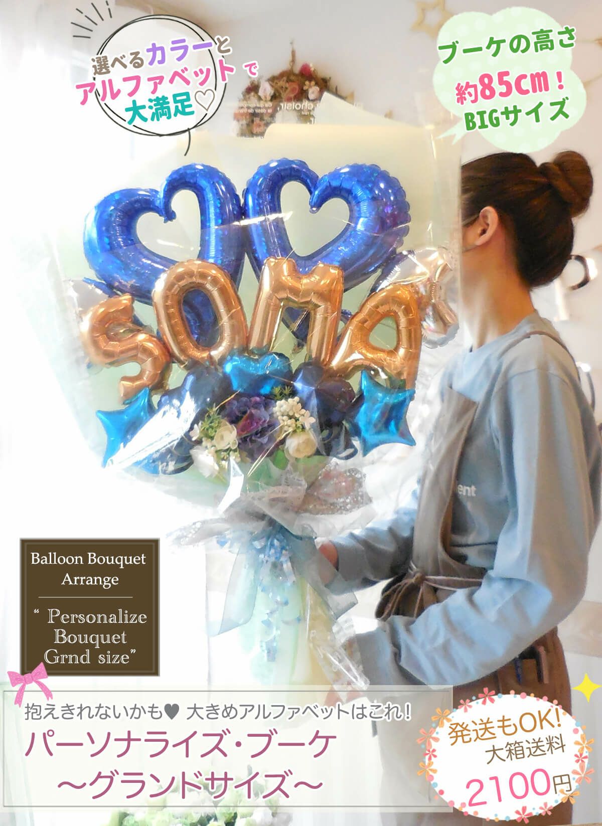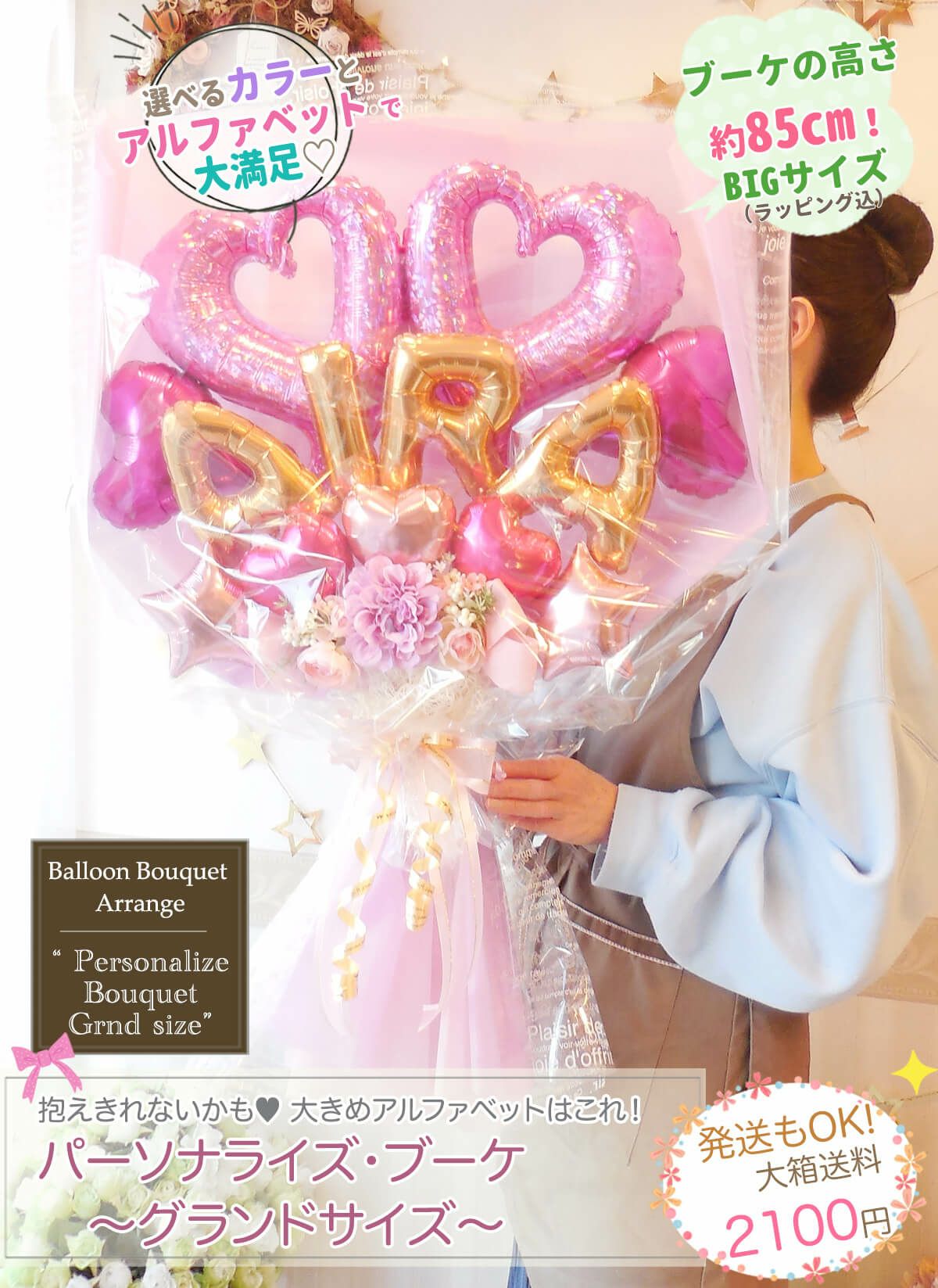4. 高さ85cmのBIGサイズ!抱えるめっちゃ大きめバルーンの花束 「パーソナライズ・ブーケ・グランドサイズ 」《送料別:9710円》(1梱包につき全国送料2100円が加算されます)お誕生日・卒業式・イベントにおすすめの超ビッグバルーンブーケ/ラッピング込で85cm【BL-F/G・BOUQUETLV5】確定から要6日/特急4-5日後