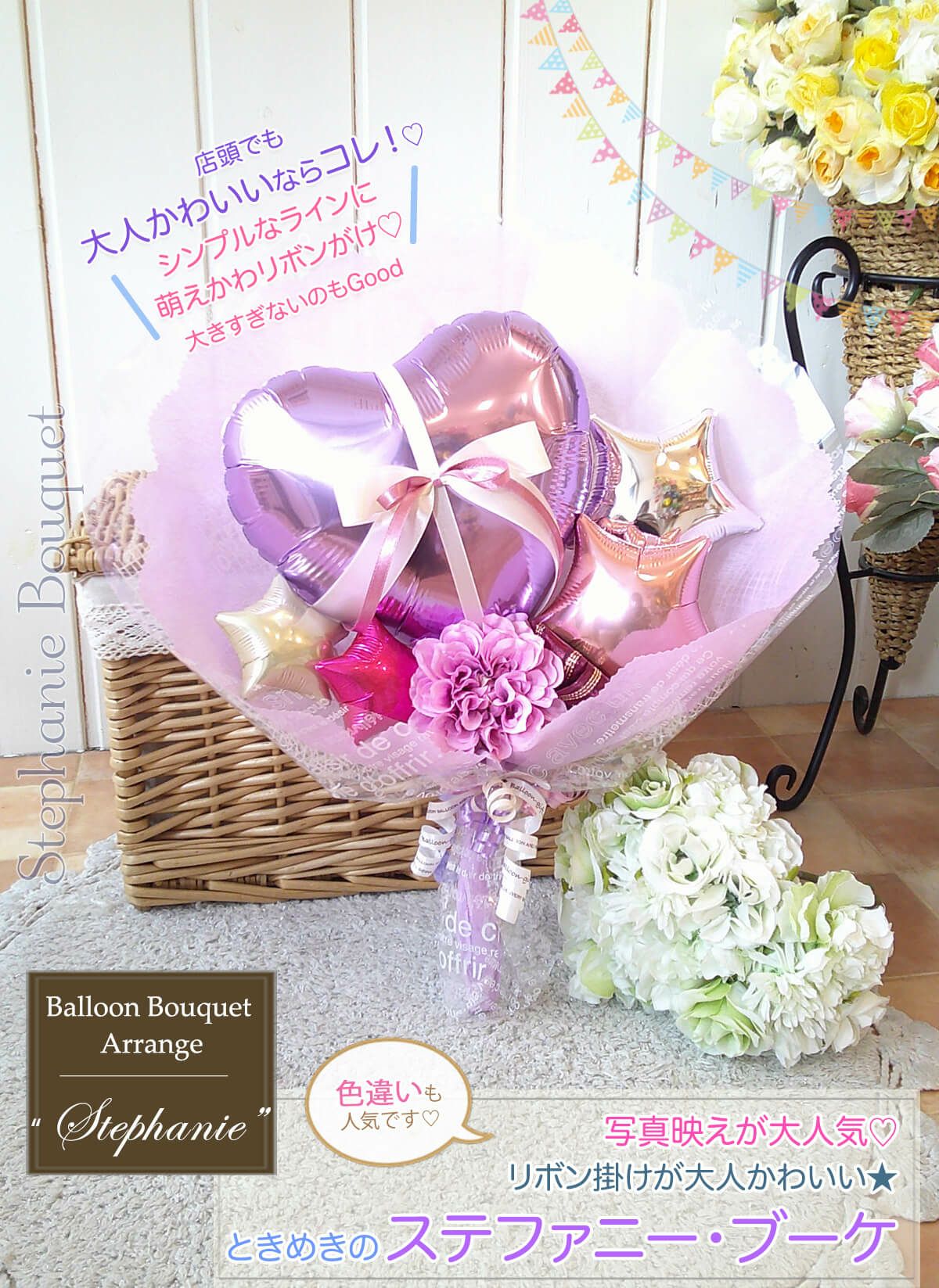 3. 【最短翌日発送】 リボン掛けがおしゃれなミディアムサイズのバルーンブーケ 『ステファニーブーケ 』《送料別:3630円》お誕生日や発表会にオススメのバルーン電報