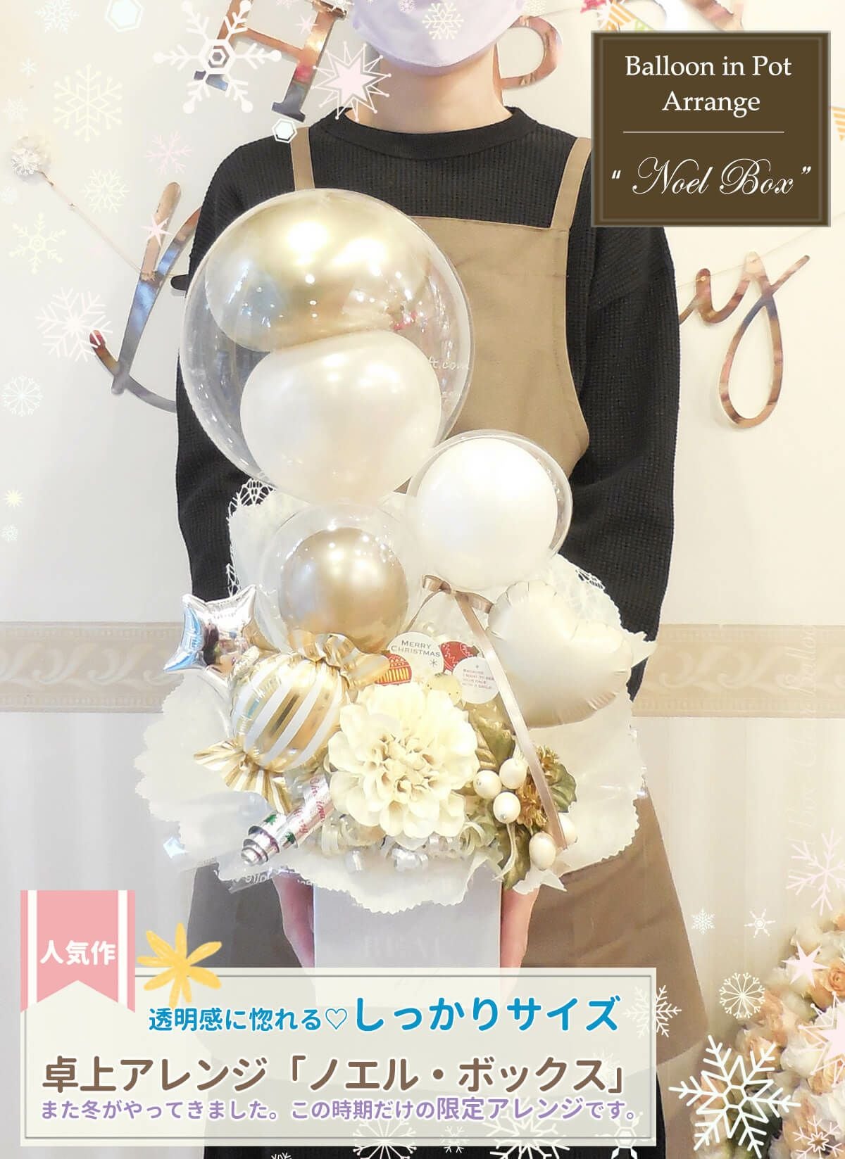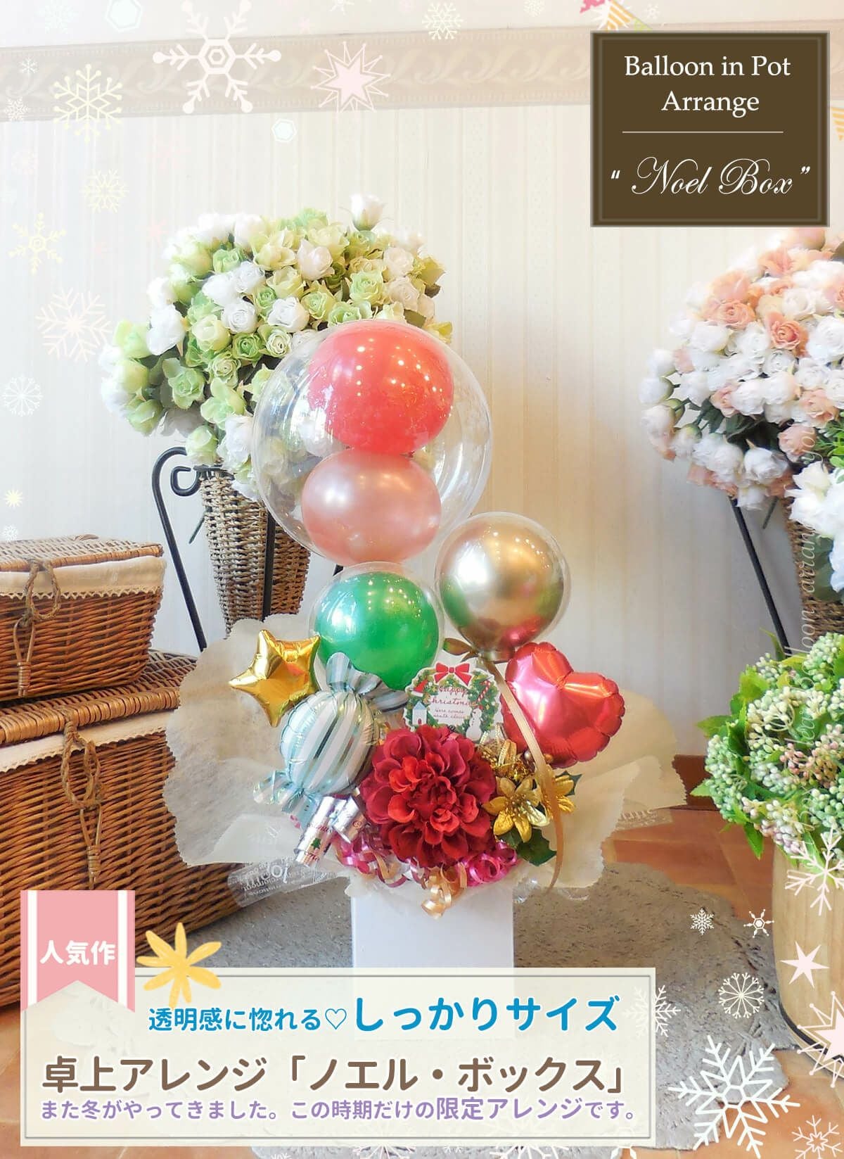 クリスマスに大人気のバルーン電報★ 【C】 Christmas NOEL BOX balloon in box