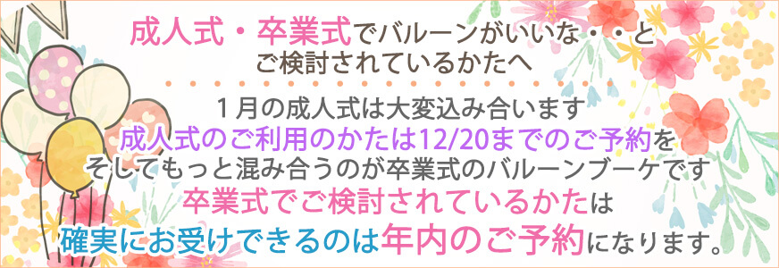 令和8年(2026年)の卒業シーズンは、2月中旬からスタートし、4月2周目くらいまではず〜っと、卒業・卒園・退職・入学のお祝いと、バルーンのハイシーズンになります。。