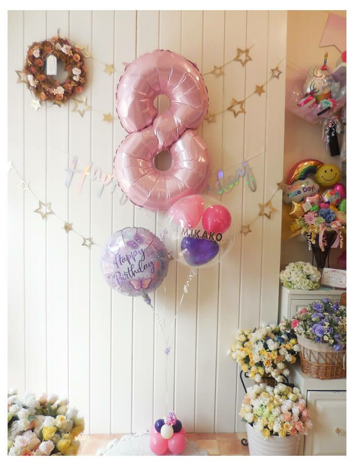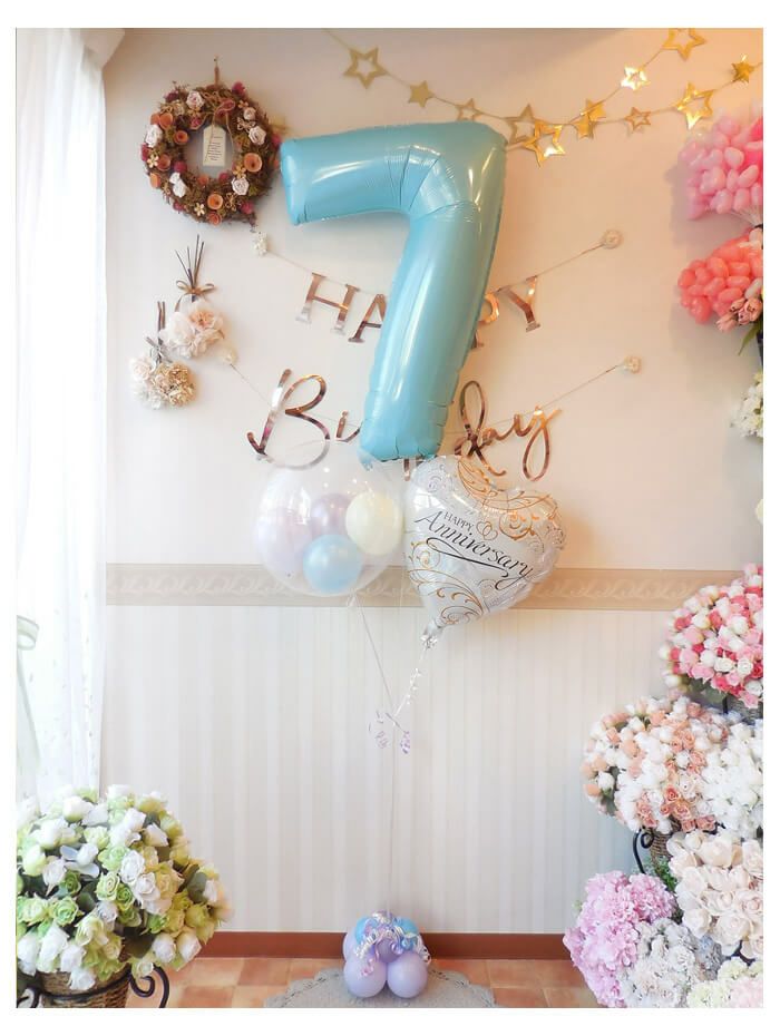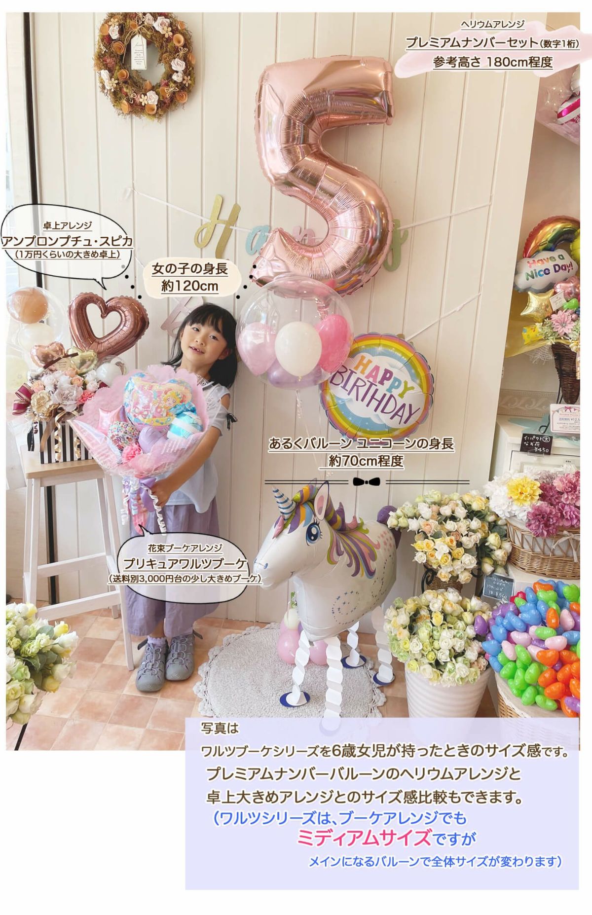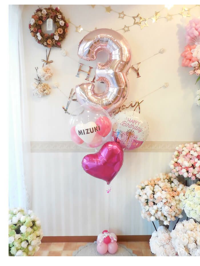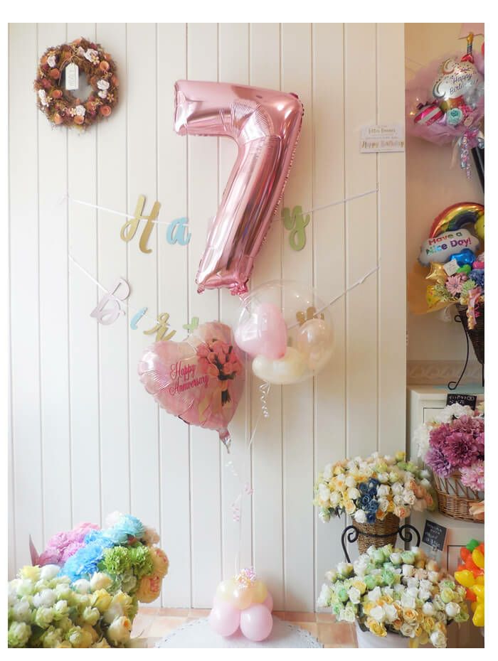 とうとう登場。数字のバルーンがメインになった7〜8000円くらいの卓上が欲しい!という声にお応えしてデビューしました。周年・お誕生日におすすめです