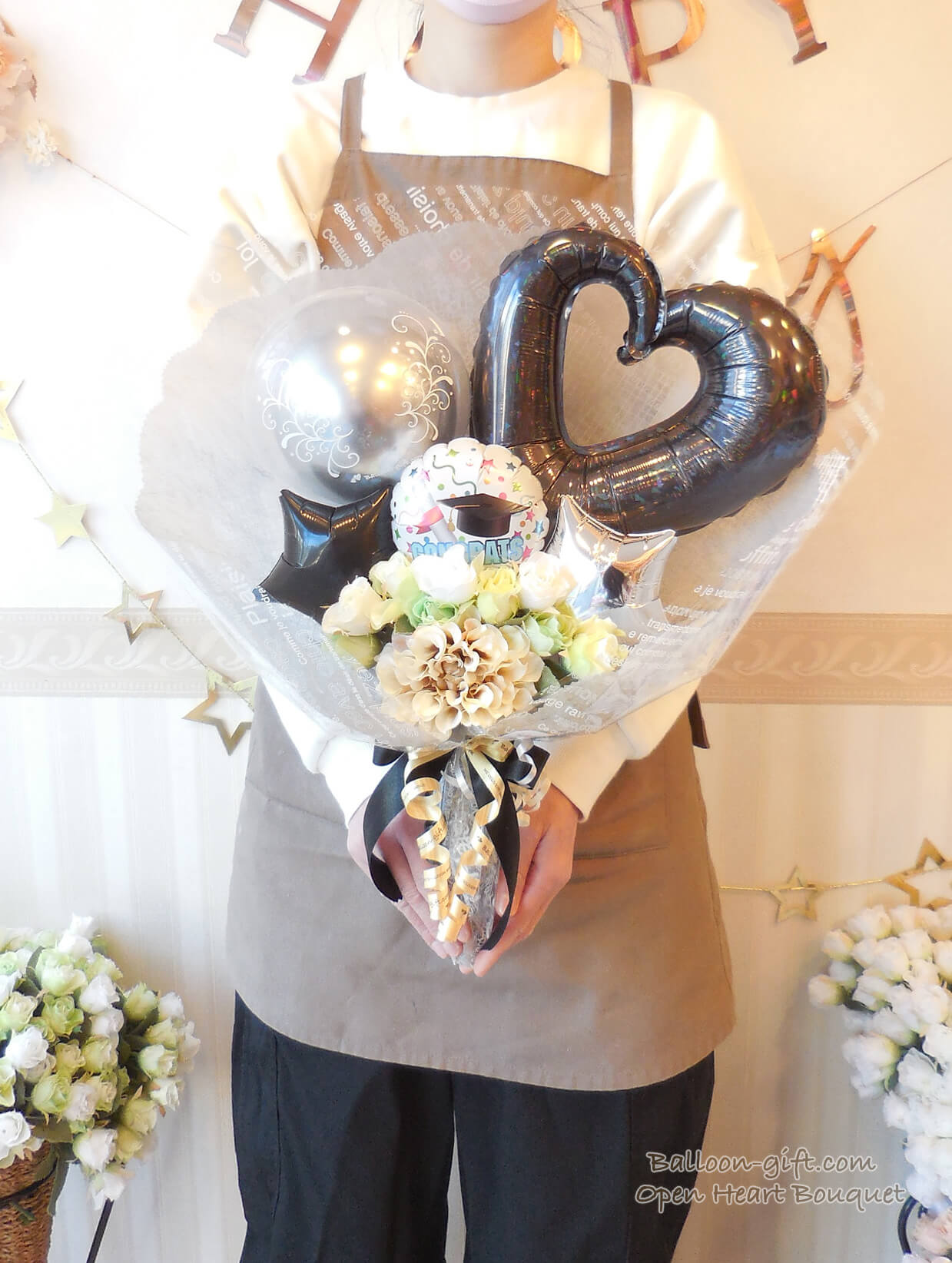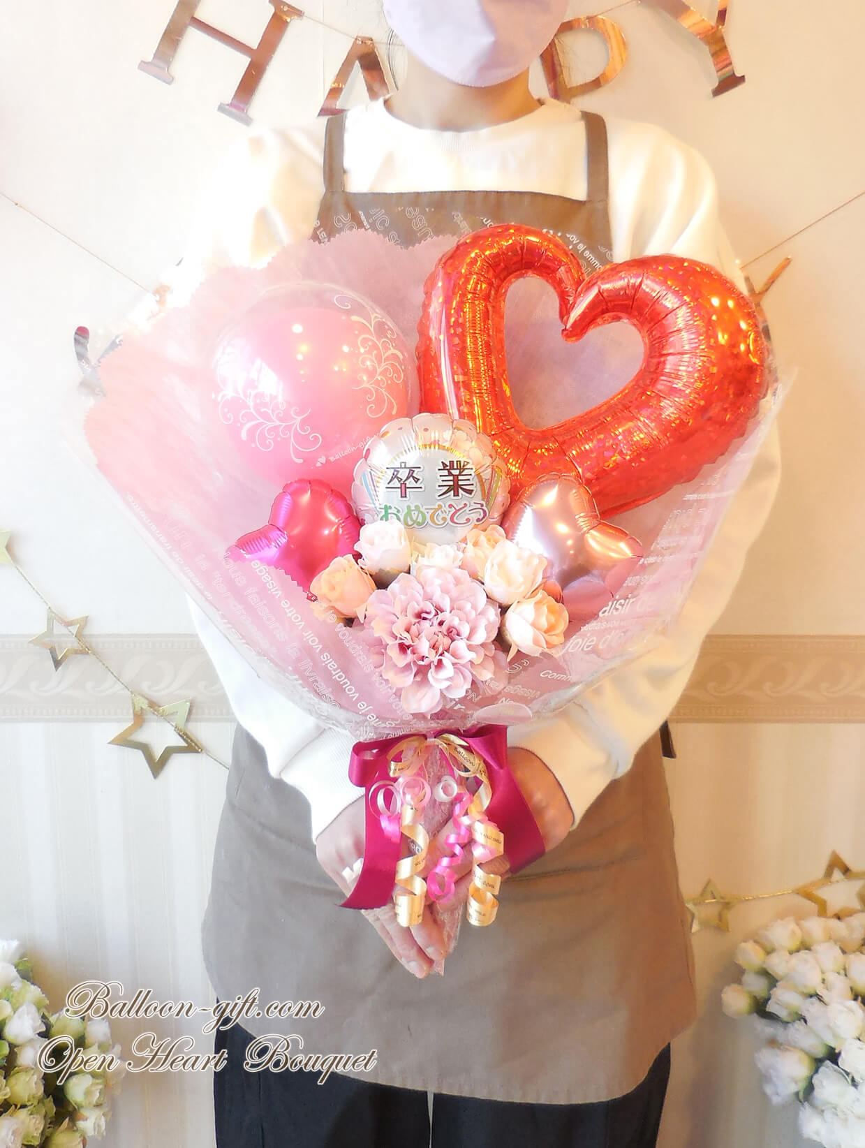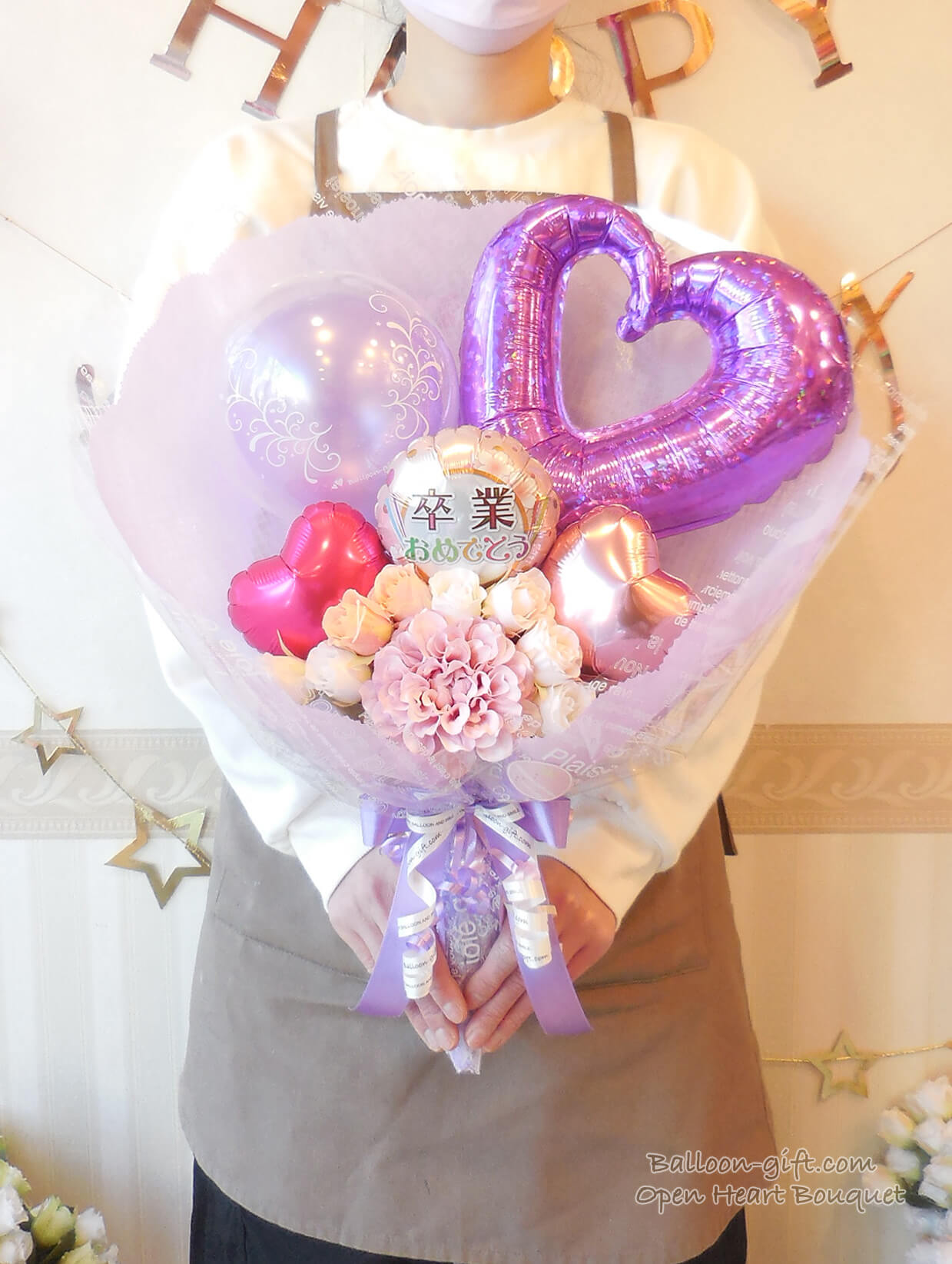 ★花束ブーケ:卒業柄/コングラッツ柄のオープンハート・ブーケ (選べる全6色!)