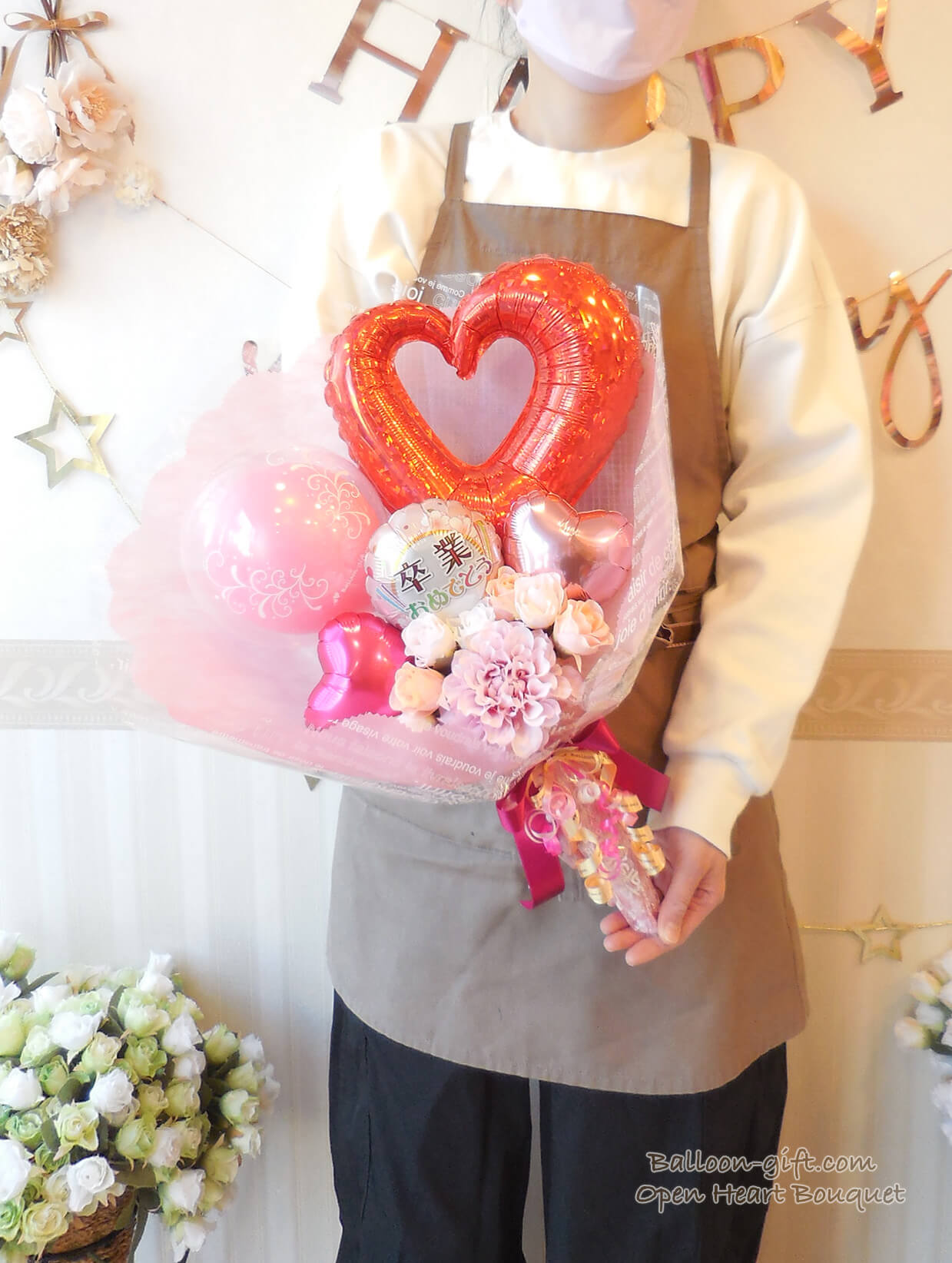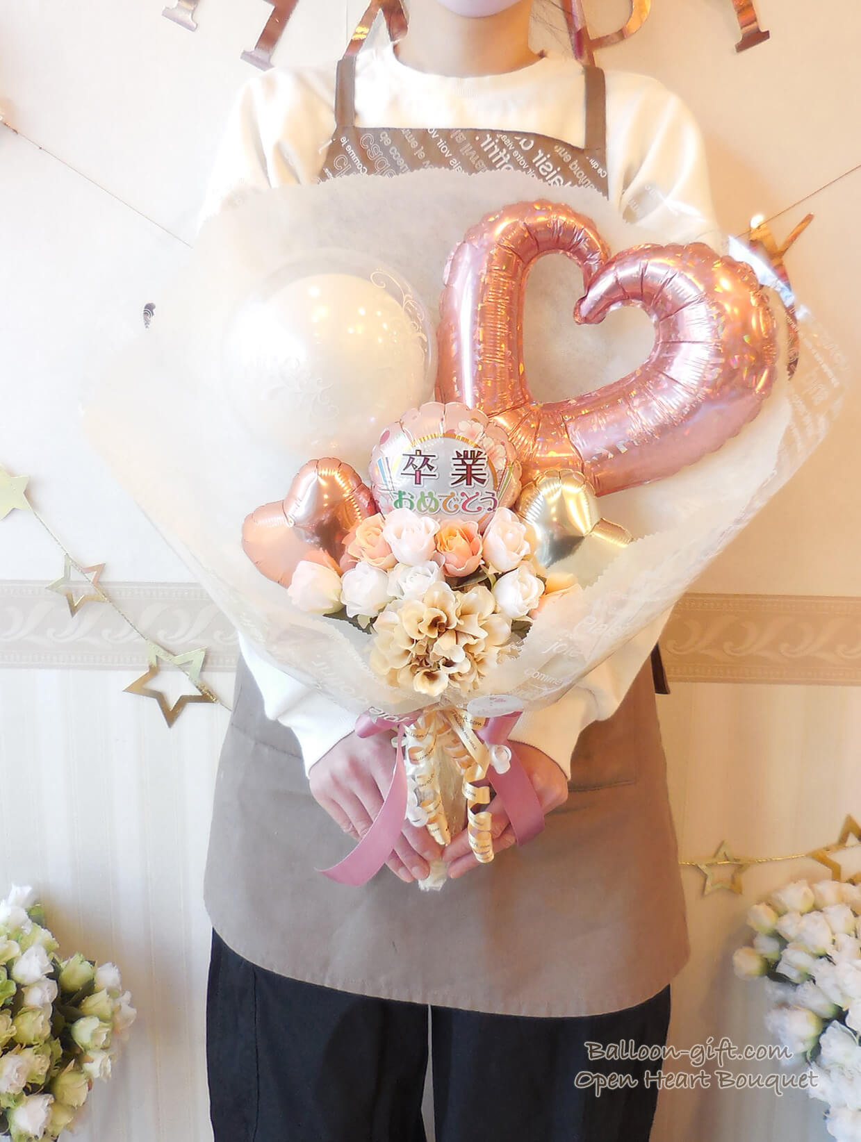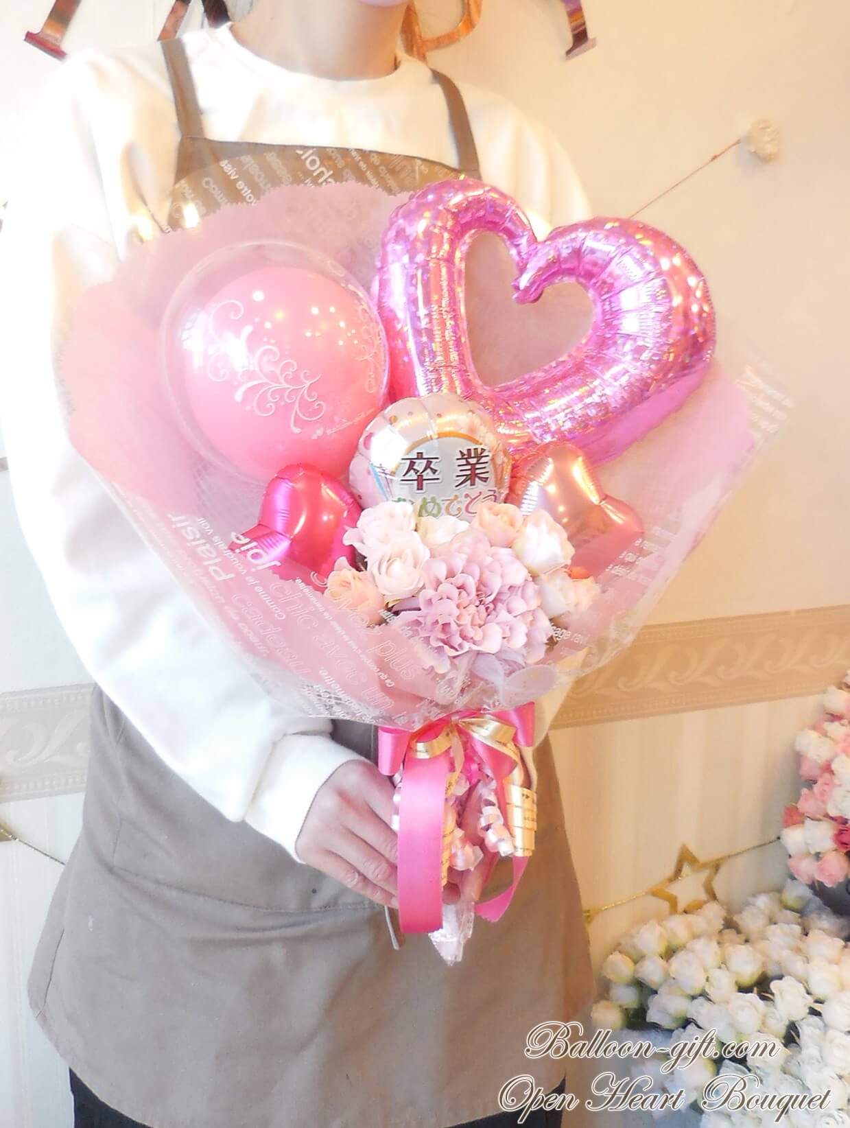 ★花束ブーケ:卒業柄/コングラッツ柄のオープンハート・ブーケ (選べる全6色!)