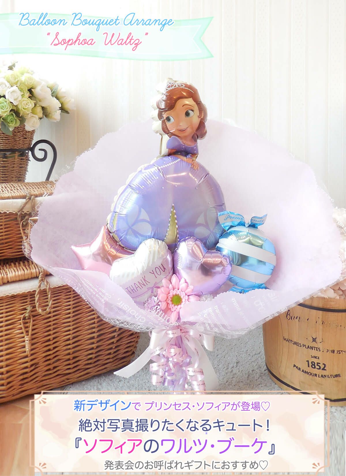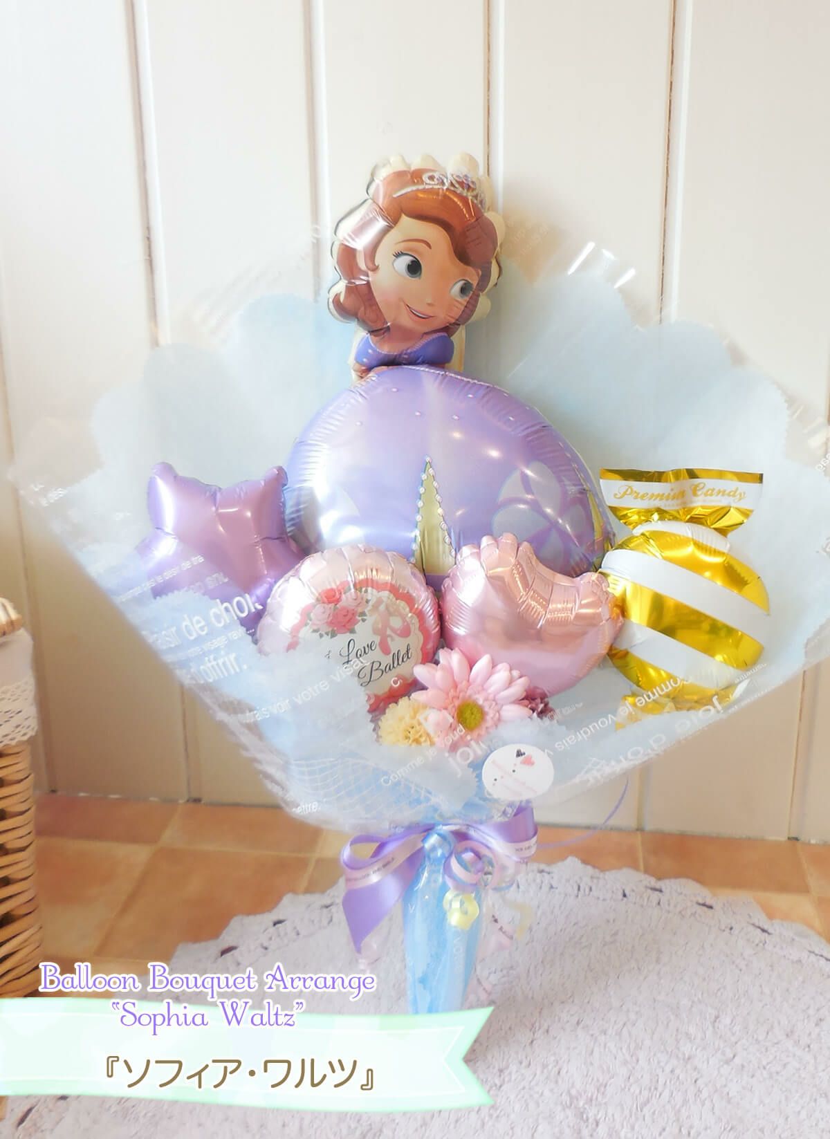 店舗受け取りなら送料無料♥《ブーケは送料950円から発送もOK》 バルーンの花束 『プリンセスソフィアのミディアムブーケ ・ワルツ』