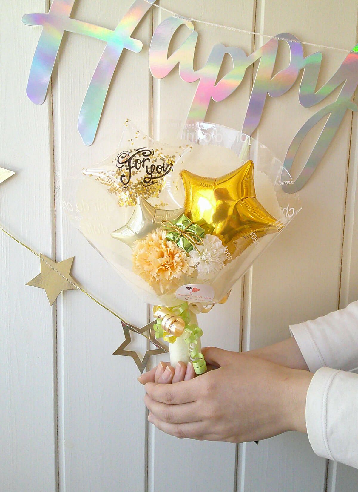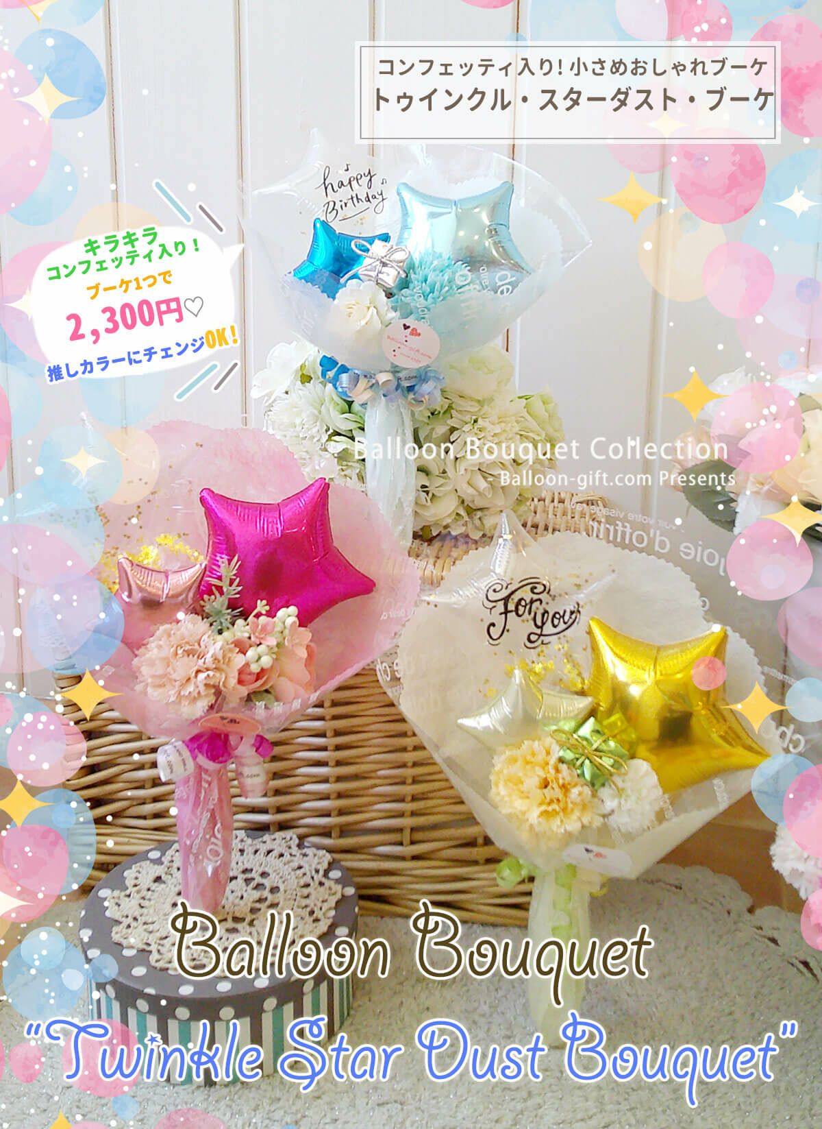 店舗受け取りなら送料無料♥《ブーケは送料950円から発送もOK》 小さめおしゃれなバルーンブーケ 『トゥインクル・スターダスト・ブーケ』