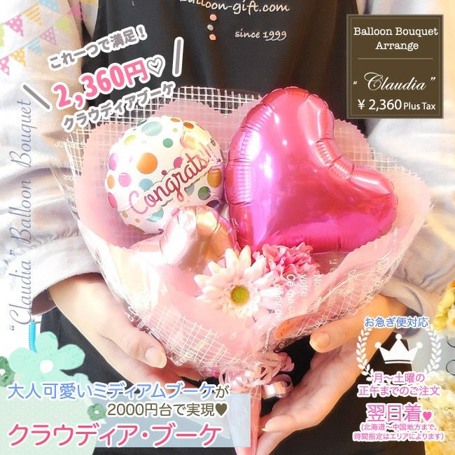 3. 大人可愛い小さめバルーンブーケ 〜クラウディア〜《送料別:2360円》 お誕生日や発表会・卒園卒業にオススメのバルーン電報
