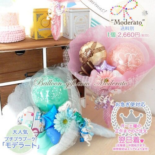 4. 花束アレンジのバルーン電報『新・モデラート』《送料別:2660円》大人かわいいミディアムブーケ・ お誕生日や発表会に大人気のバルーン電報