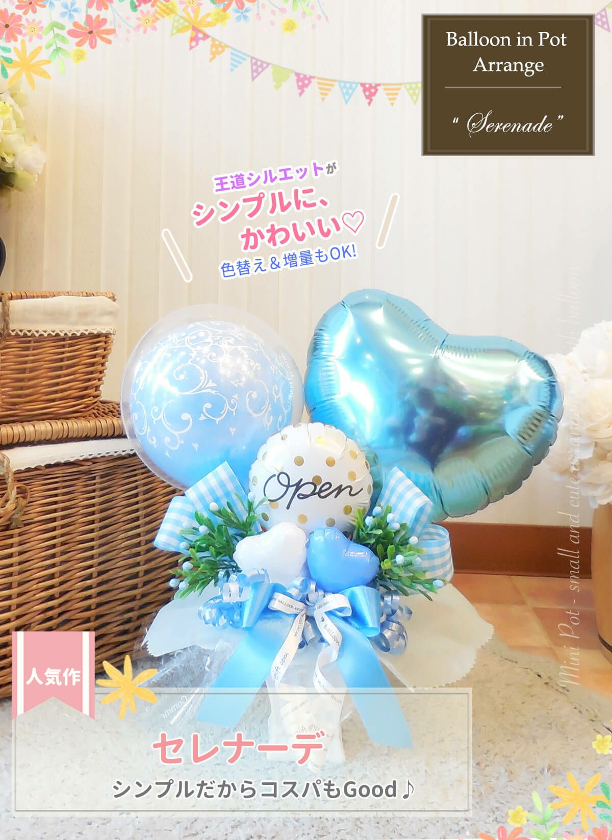 片手にちょこんと乗るサイズがキュートな卓上アレンジ 「新・ミニポット」」《送料無料 3890円》お誕生日やウエディング・開店周年・発表会に大人気のバルーン電報【BL-A/D1】
