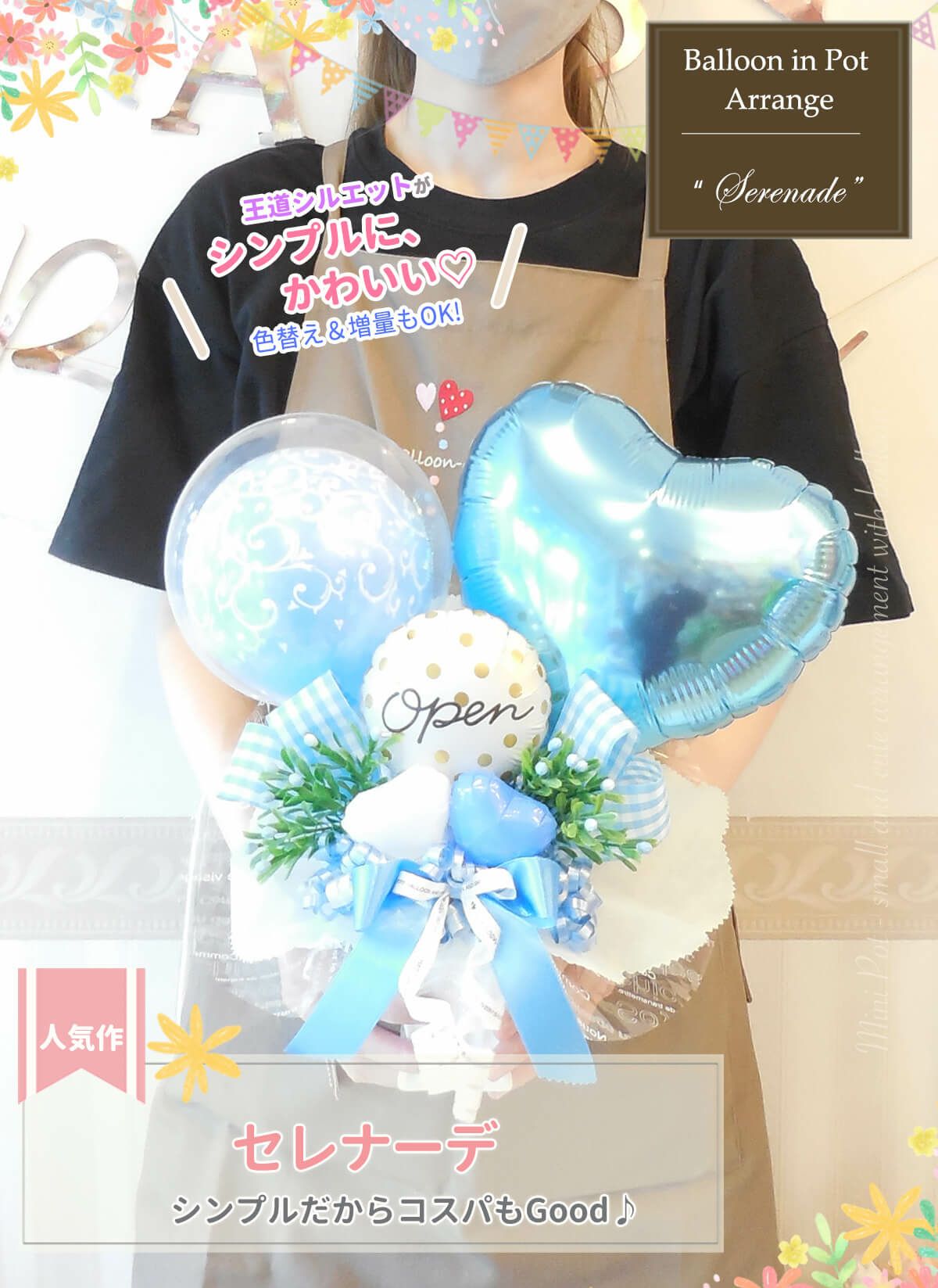 卓上アレンジ「セレナーデ《送料無料 5890円》 お誕生日やウエディング・発表会・開店周年お祝いに大人気のかわいいバルーン電報【BL-B/D1.5】