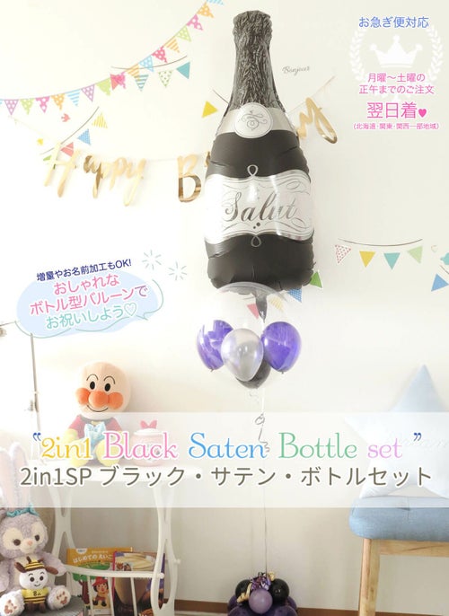 2in1SP ブラックサテン生地でクールに決めて! 『ブラック・サテン・ボトルセット』【BL-H】披露宴や開店・周年祝いにオススメのバルーン電報《特大箱 送料込 8200円 / 店舗受取:5300円 税別》★もうすぐサヨナラ★のレビューを書く