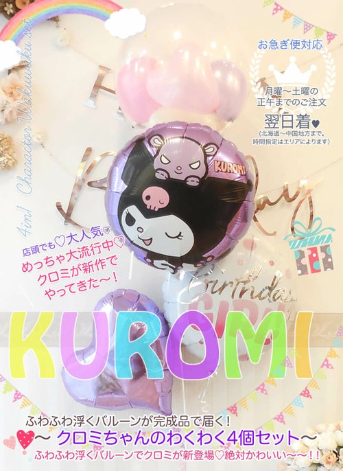 ★クロミはまだまだ大フィーバー中★ 4in1大人気の『クロミちゃんのわくわく4個セット』【BL-E】 お誕生日や発表会にオススメのバルーン電報 店舗受け取り・発送どちらもOK! 《中箱 送料込 7850円 /店舗受取:6,250円 税別》のレビューを書く