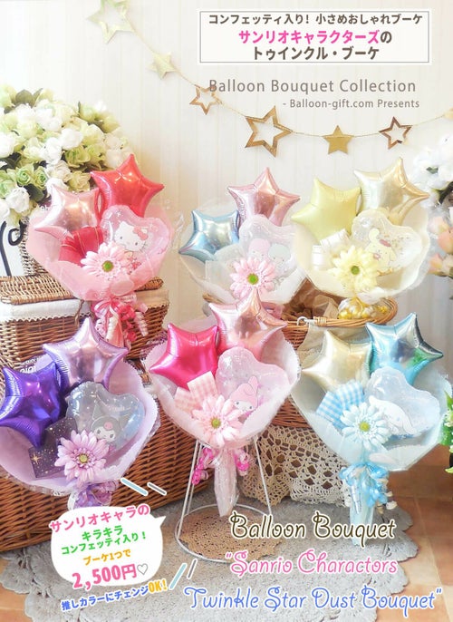 店頭でも大人気!小さめおしゃれなバルーンブーケ 『サンリオキャラクターのトゥインクル・ブーケ』 《送料別:2500円》 お誕生日や発表会にオススメのバルーン電報【BL-ABC/BOUQUETLV1/TK1】のレビューを書く