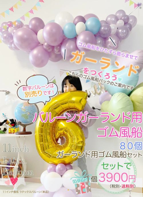 《メール便送料無料(指定日NG)》バルーンガーランドを作ろう! シンプルな普通のゴム風船(膨らんでいない状態)大小80個セット+ひも5mおまけ付き♥ 送料別ゴム風船80個セットで3900円税別のレビューを書く