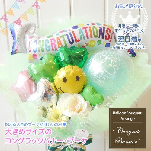 抱えるサイズの大きめ花束ブーケ「コングラッツ・バナー・ブーケ」《送料別:5000円》 お誕生日や発表会に大人気のバルーン電報のレビューを書く