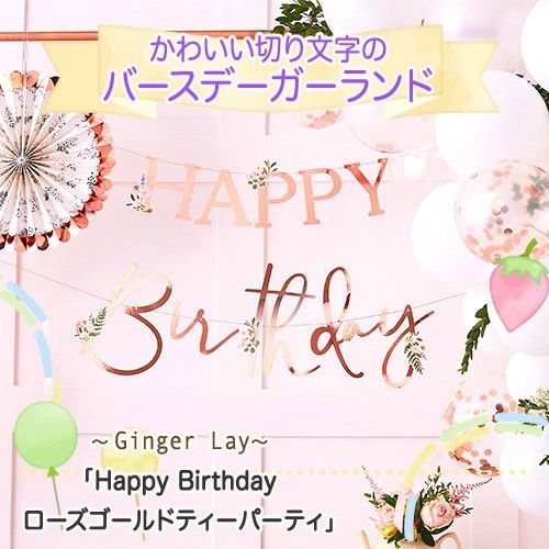 【完売】壁にかける切り文字・レターバナー 「Happy Birthday ローズゴールド」 Ginger Rayのおしゃれ切文字紙製バナー 送料別2700円★インスタ映え間違いなし★のレビューを書く