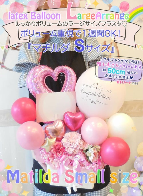 ★Sサイズ★1週間前までの要予約★【日持ち1週間限定・短期イベント専用】宅配対応バルーンフラワースタンド(置型) 「抱えるサイズの大きめフラスタ Matilda マチルダSサイズ」【中箱E2】イベント・コンサート・握手会にバルーン電報【ハガキカード込】のレビューを書く