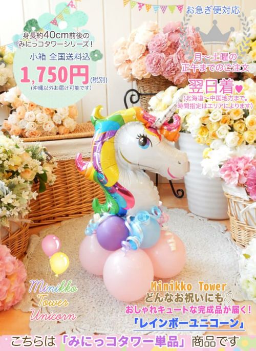 《送料込1750円》みにっコタワー「レインボー・ユニコーン」 ★お誕生日や発表会に大人気のバルーン電報★ 【BL-B/C】のレビューを書く