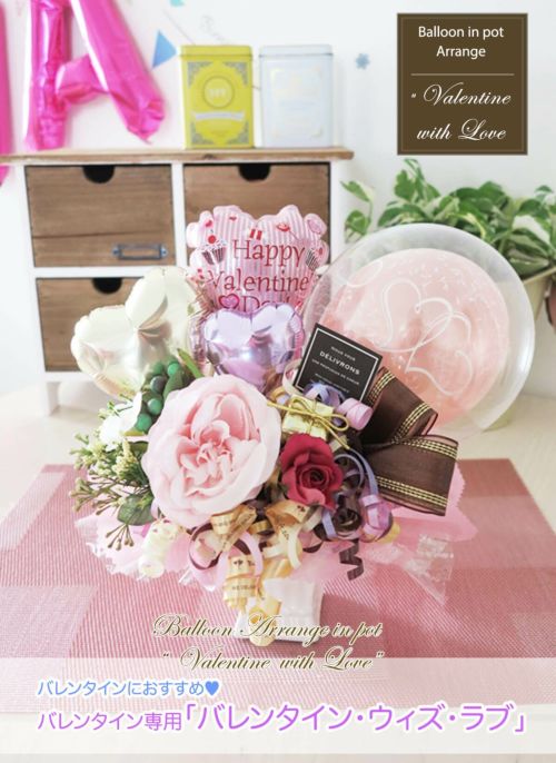 【送料込 6100円】 浮かないバルーンの卓上アレンジ 「バレンタイン・ウィズ・ラブ2026」 人気アレンジの進化系♡ とってもかわいいバルーン電報のレビューを書く