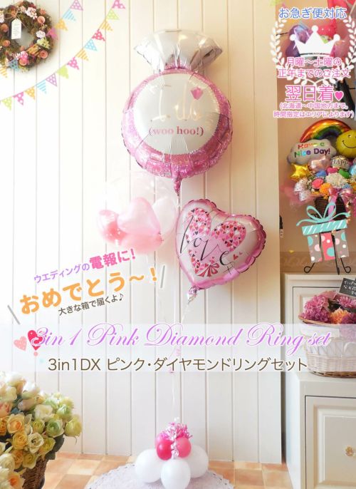 披露宴や結婚式・婚約・二次会のウエディングのバルーン電報に 誓いのピンクダイヤモンドリングセット 《3in1DX 送料込7500円》【BL-E】のレビュー