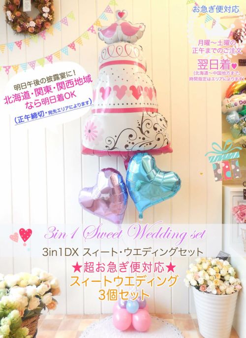 ★超お急ぎ便対応★「スィートウエディング 3個セット」 《送料込6400円》3in1プチシリーズ DX 正午までのご注文で翌日お届け可能地域あり(北海道・関東・関西) 披露宴や結婚式・婚約・二次会にオススメのバルーン電報【BL-E】のレビュー
