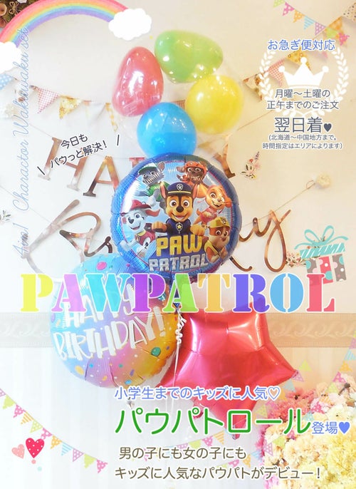 パウっと登場!『パウパトロールわくわく4個セット』【BL-E】 お誕生日や発表会にオススメのバルーン電報 店舗受け取り・発送どちらもOK! 《中箱 送料込 7850円 /店舗受取:6,250円 税別》のレビュー