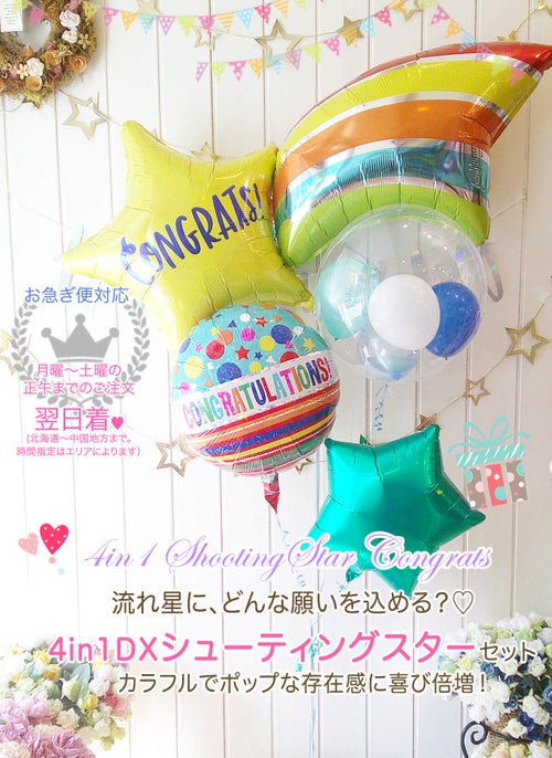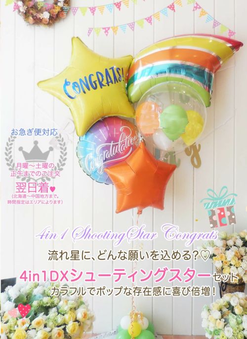 4in1DX『シューティングスター・コングラッツセット』【BL-G】 開店祝いや結婚式・誕生日・周年祝いにオススメのバルーン電報 店舗受け取り・発送どちらもOK! 《大箱 送料込 9600円 / 店舗受取:7350円 税別》のレビュー
