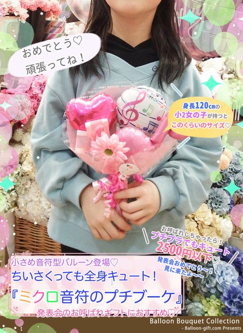 小さな音符が登場♪ 『ミクロ音符のプチブーケ』とってもかわいいバルーン電報 《送料別:2200円》【BL-ABC/BOUQUETLV1/TK1】のレビュー