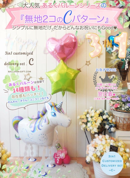 選べるあるくバルーンの『デリバリー3個セット Cタイプ』(あるく+無地2個のシンプルセット)《送料込5000円より》 お誕生日やウエディング・開店周年・発表会にオススメのバルーン電報【BL-D/E】のレビュー