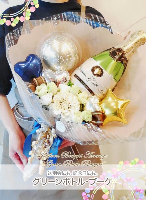 ☆リボンが増えてリニューアル☆ミディアムラージサイズの花束ブーケかっこいいなら任せて!『グリーンボトル・ブーケ』《送料別:6150円》 お誕生日や発表会にオススメのバルーン電報【BL-C・BOUQUETLV4/TK10】のレビュー