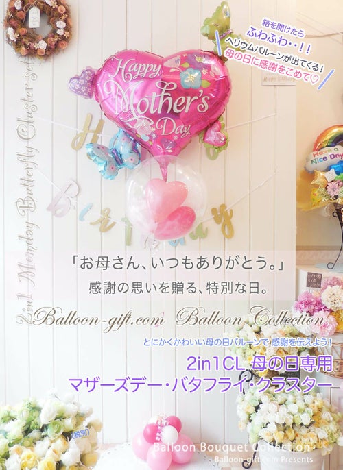 2026年もおすすめ! 2in1CL 母の日専用・マザーズデー・バタフライ・クラスター とってもかわいいバルーン電報【BL-E/F】《大箱送料込 7,250円 / 店舗受取5,000円 税別》のレビュー
