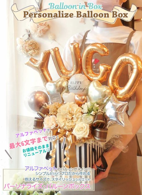 ☆要日数☆人気!6文字までの名前をアルファベットで☆『パーソナライズ・バルーン・ボックス』《送料無料 4文字 11,440円/5文字 12,690円 /6文字13,290円 税別》 お誕生日や開店周年にオススメのバルーン電報【BL-C/5文字以上はE2・D4/TK10】のレビュー