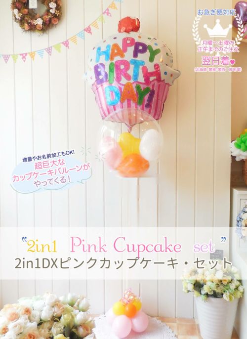 【お誕生日専用】大箱でお届け!2in1DXピンクカップケーキ・セット ★お誕生日のお祝い専用バルーン電報★【BL-E/F】店舗受け取り・発送どちらもOK!《大箱送料込6600円 / 店頭受取:4500円 税別》のレビュー