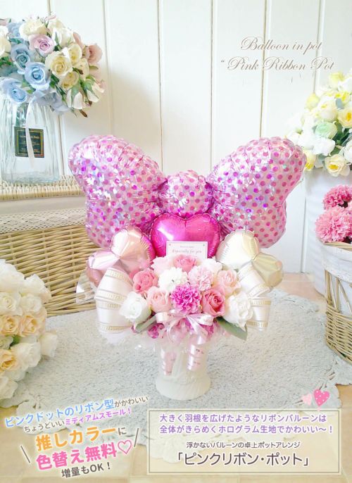 卓上アレンジ ~ピンクリボン・ポット~ 《送料無料 6550円》 ライブやイベント・握手会にオススメのバルーン電報【BL-B/D2/TK4】のレビュー